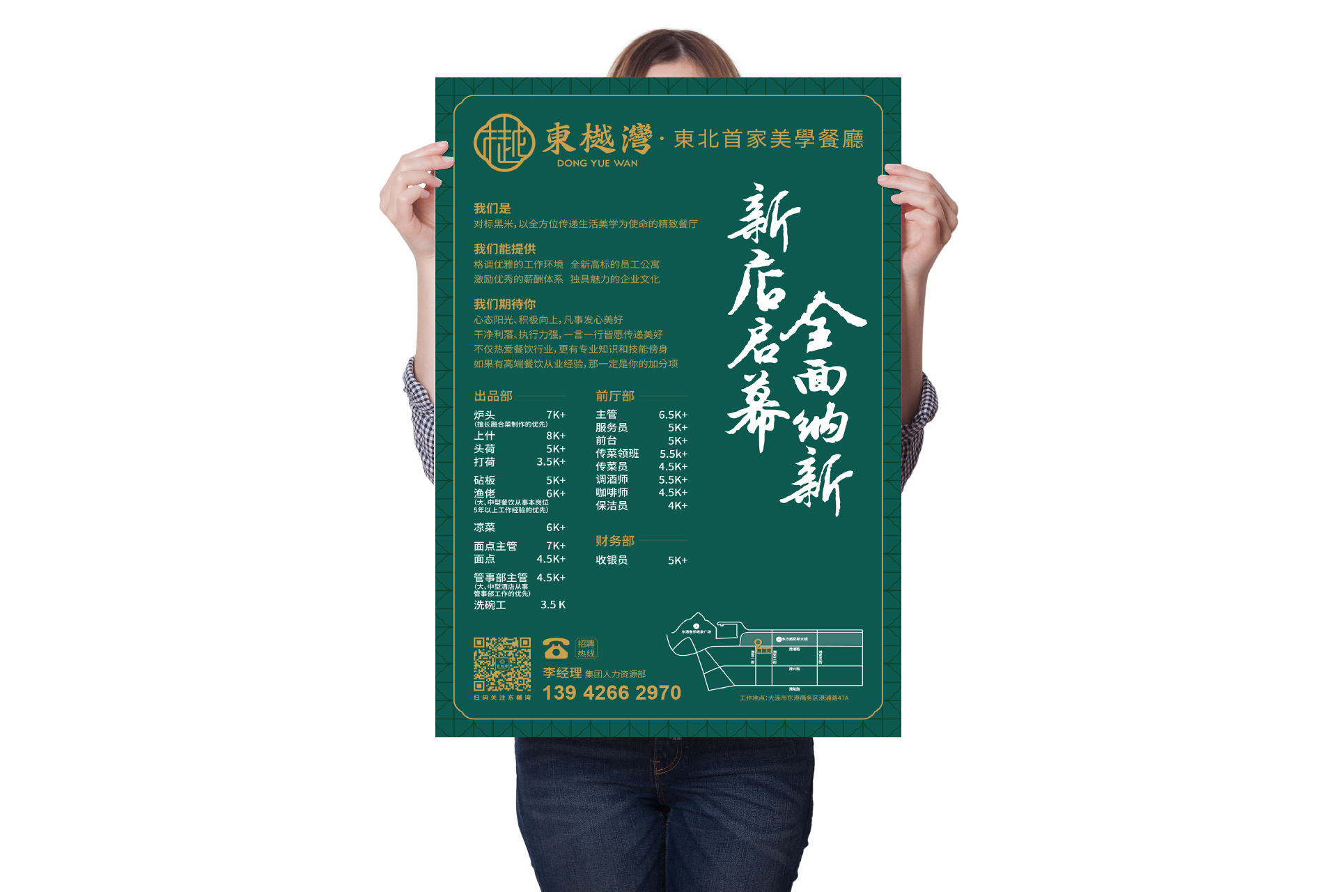 東樾灣美學餐廳的 LOGO 设计巧妙融合传统文化元素与现代设计理念,通过铜钱纹样、 “樾” 字以及绿金色彩搭配,传递财富、自然、福泽与奢华等多重寓意,从视觉设计延伸至空间体验,全方位塑造了餐厅独特的品牌形象,成为连接顾客与餐厅文化内涵的重要纽带。