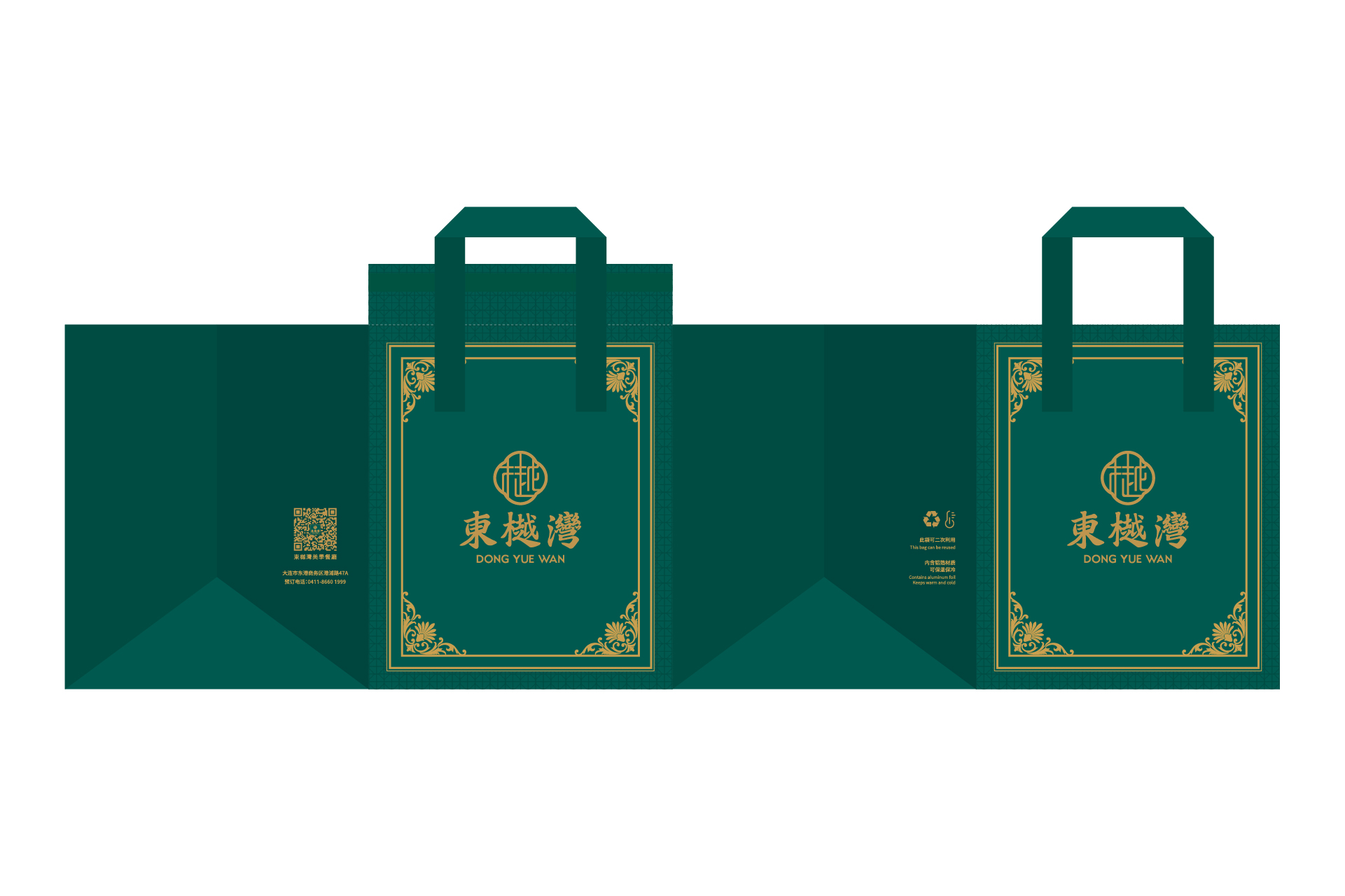 从视觉设计到空间体验的延伸 :東樾灣餐厅的 LOGO 影响不仅局限于视觉层面,还贯穿于空间设计与品牌理念之中。门头上醒目的绿色与金色标志成为视觉焦点,吸引顾客。内部装饰中,LOGO 元素巧妙融入地面金色钱纹图案、餐桌金色边饰、墙面绿金搭配等细节,彰显品牌独特性与设计完整性。餐具设计也延续 LOGO 色彩理念,金色餐具搭配绿色桌布与摆件,使顾客在用餐时感受品牌文化氛围,加深对品牌形象的认知,让用餐成为富有文化意义的仪式感体验。