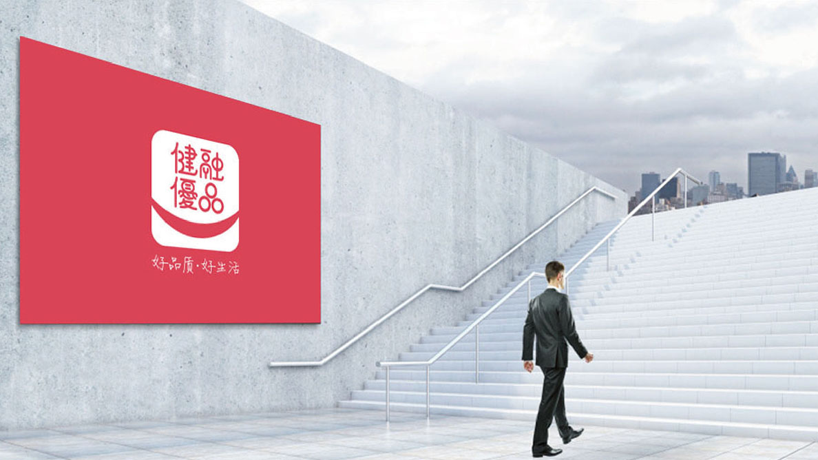 创意共和大连设计公司为健融优品公司提供标志设计、VI设计、广告牌设计等服务