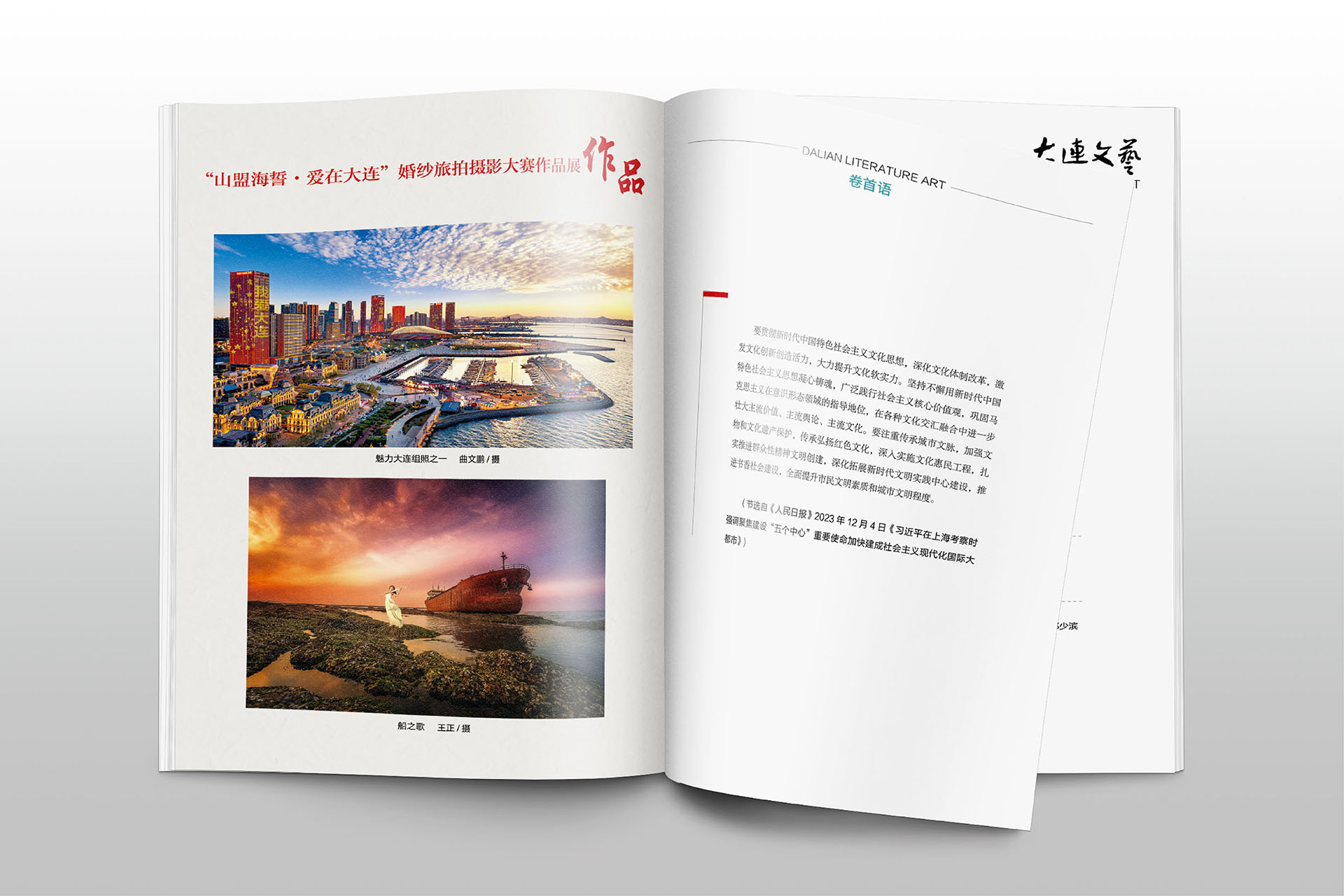 创意共和大连设计公司为大连市文联提供杂志设计服务,《大连文艺》整体文化感十足,讲述大连这些年文艺界的一些故事和影响深远的人,让读者了解大连文艺界的事和人。水墨风和适当的留白,也让整本杂志更具美观和阅读的趣味,打破刻板,推陈出新。
