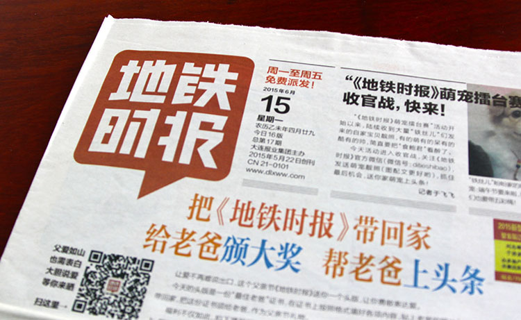 项目背景:大连新闻史上具有开创意义的第一份地铁报——《地铁时报》崭新面世。《地铁时报》是经国家新闻出版广电总局批准出版的面向我市地铁乘客的都市生活类报纸,由大连报业集团主管主办、大连地铁传媒有限公司运营,逢周一至周五出版,每天至少16版,日发行量25万份,免费赠阅,发行区域独占四通八达的大连地铁运行网络以及大连快轨3号线。作为全市“地铁族”的第一读本、大连白领生活的深度介入者,《地铁时报》主打新闻服务,强调“四度”传播,即“有态度的新闻”、“有温度的传递”、“有热度的互动”、“有高度的视角”;为用户提供“四心”服务,即“实心服务”、“爱心服务”、“良心服务”、“贴心服务”。