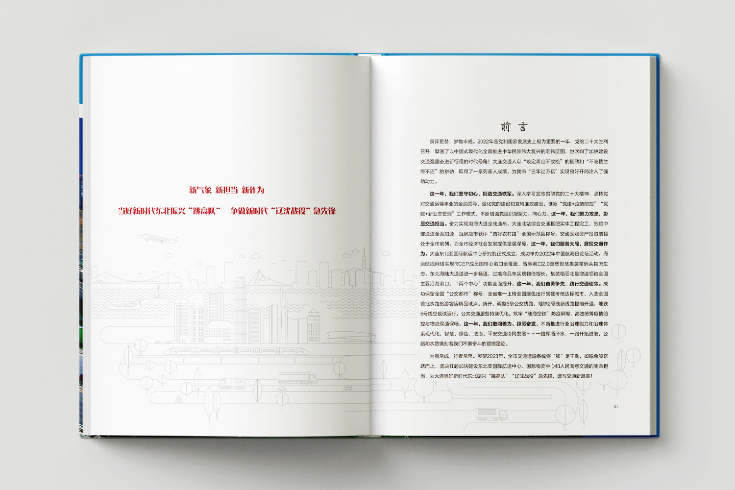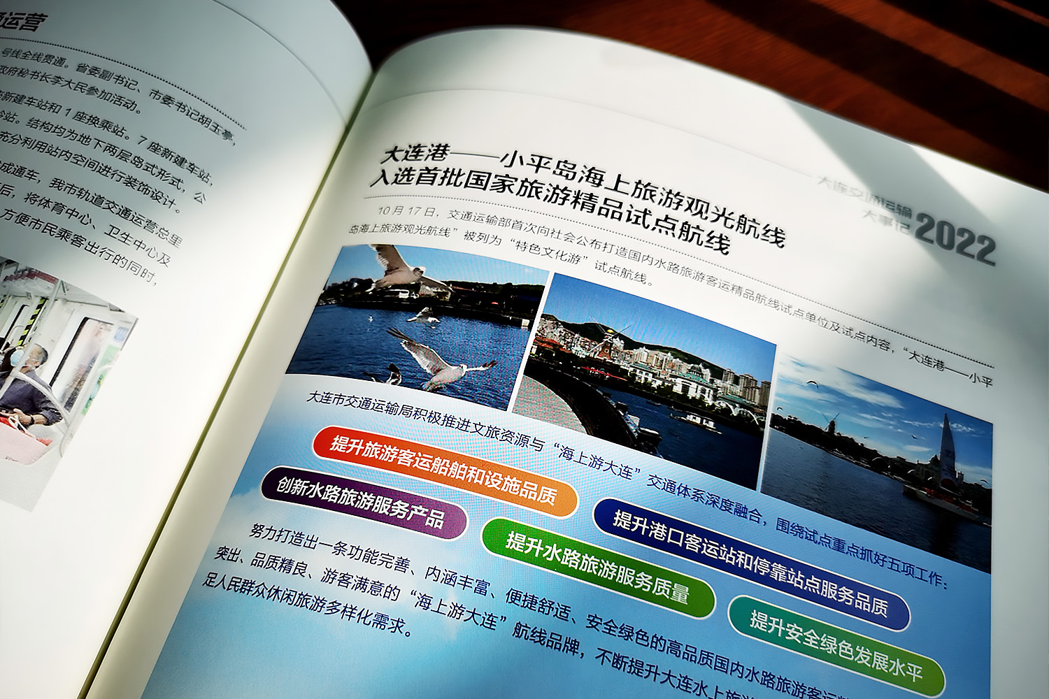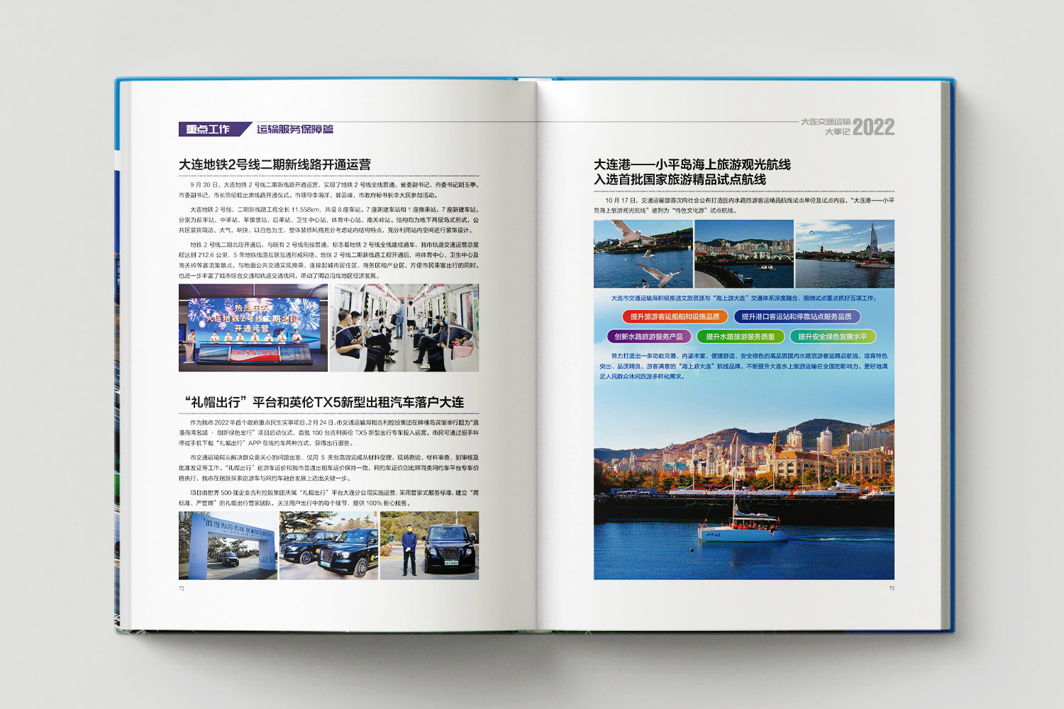 创意共和(大连)设计有限公司受大连市交通运输局委托,为其提供2022年大连交通运输大事记样册设计等服务。