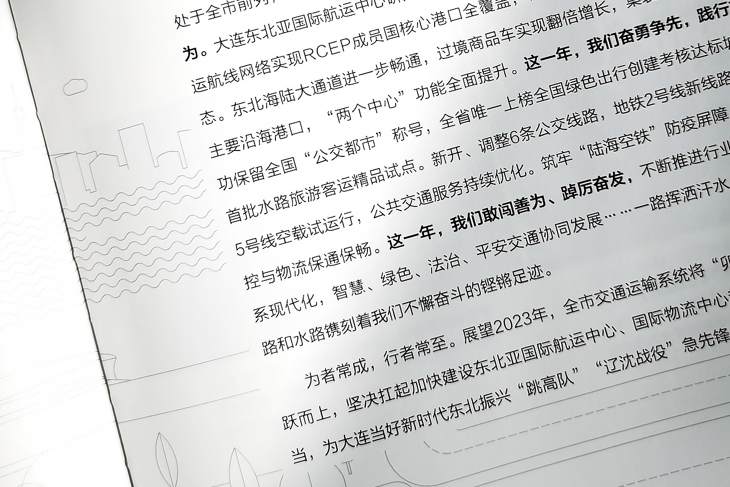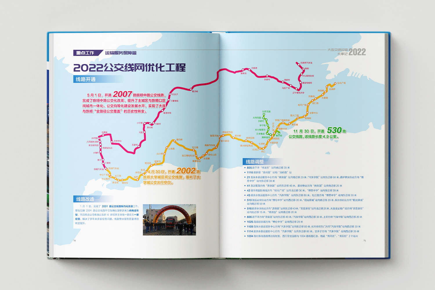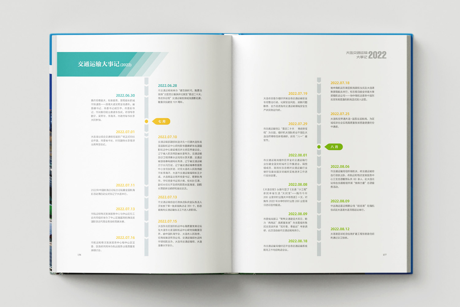 创意共和(大连)设计有限公司受大连市交通运输局委托,为其提供2022年大连交通运输大事记样册设计等服务。