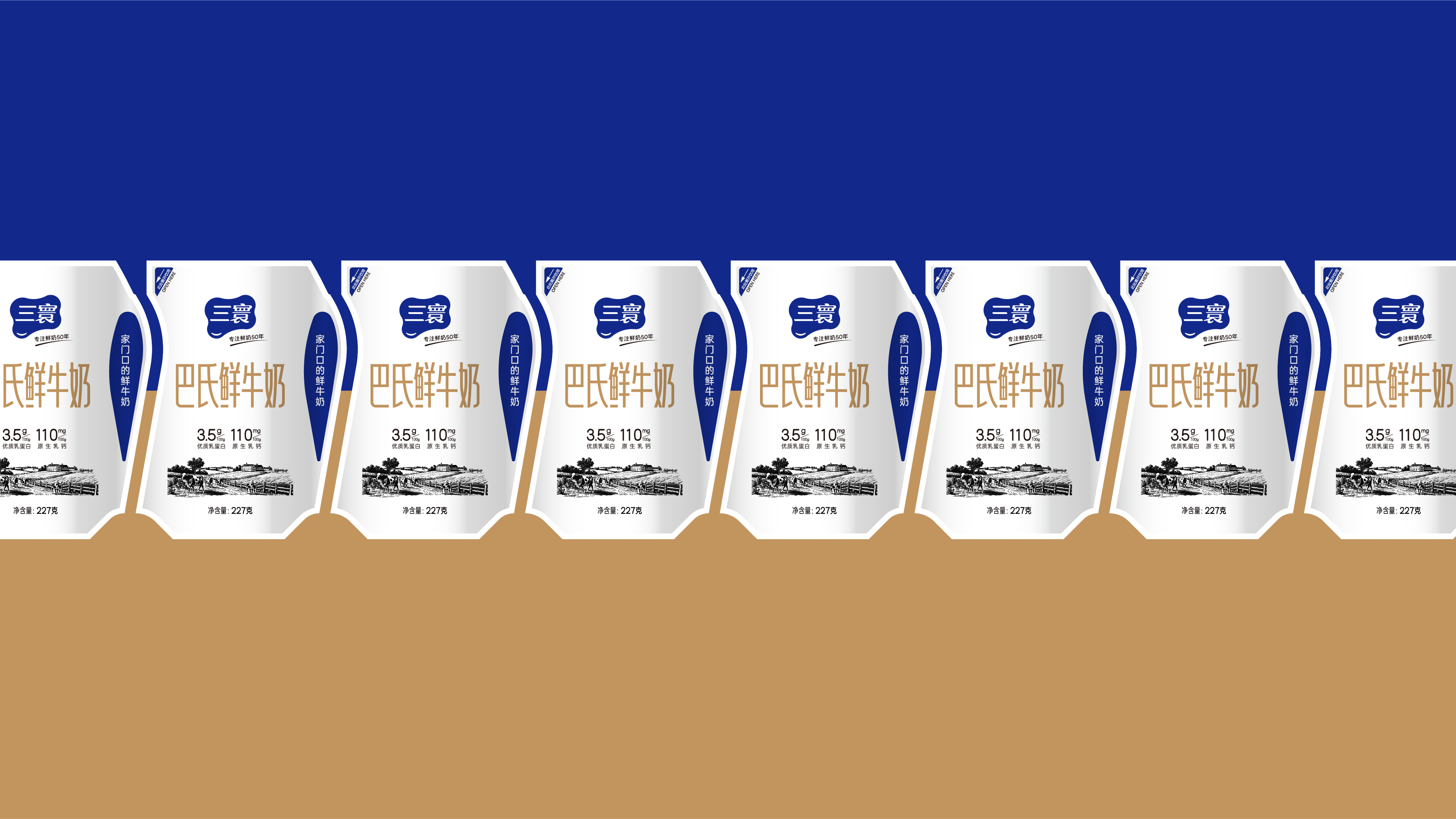 恰逢50年之机,三寰乳品产品线全新升级,运用新设备新技术,三寰鲜奶全部提高了乳蛋白含量和钙含量。创意共和设计公司为三寰乳业最先上市的“三寰巴氏鲜牛奶”爱克林装设计了全新的包装图案。全新包装设计,画面元素更简洁,品牌更突出,颜色更加品牌化,更能准确传递产品卖点。