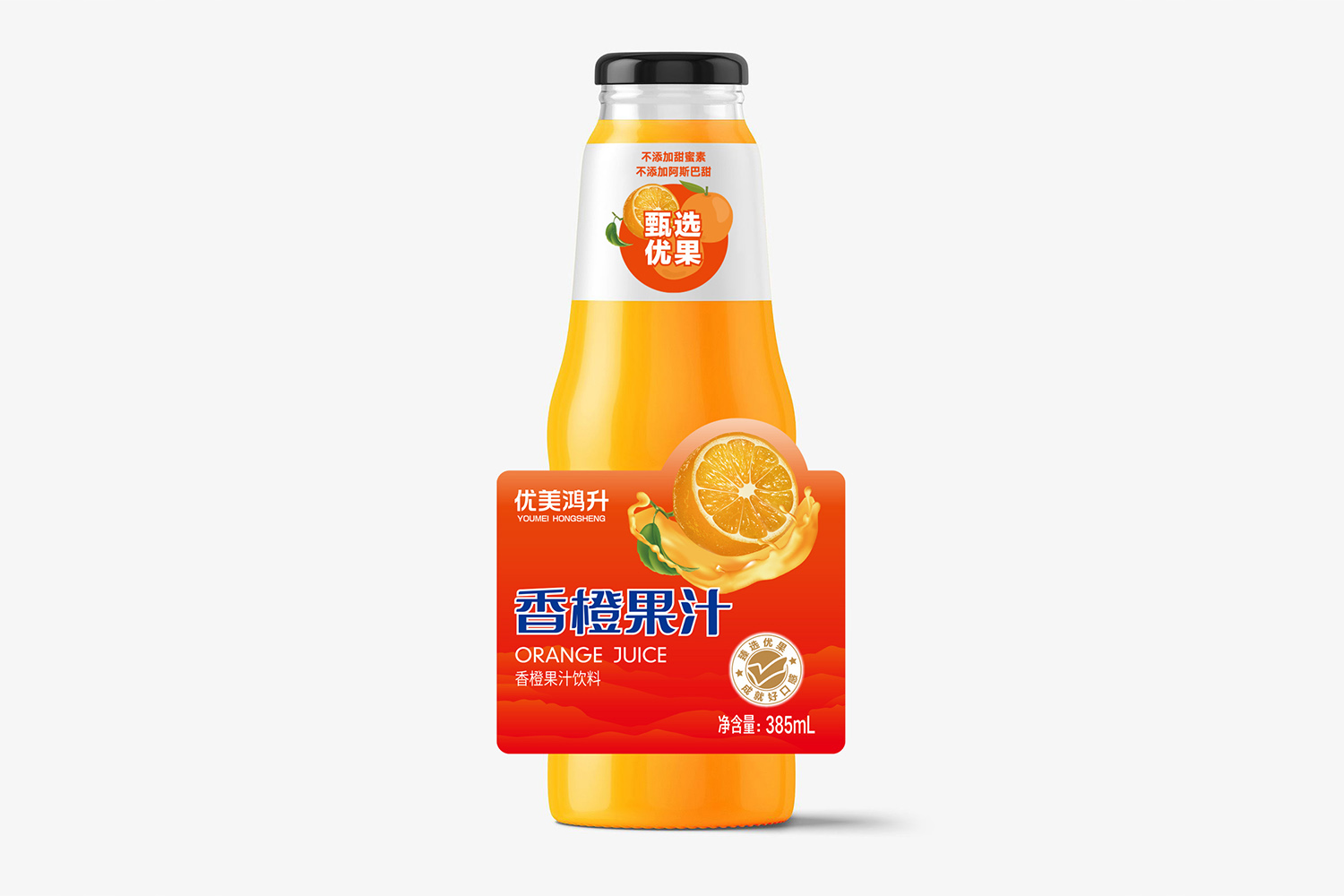 创意共和为“优美鸿升”品牌设计的一款果汁饮料包装。