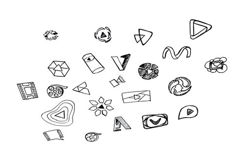 在大家的手稿中,我们排除了过于写实的胶片,摄影机等元素,从品牌的角度上来说,这一类图形过于写实了,使产品含义受到局限,没有一种更深的内涵,很容易停留在只是工具的概念上,不够神秘太过直白,与我们前期的定位不相符合。我们发现鱼的造型和三角形的播放键造型非常吻合,也代表了自由快乐,娱悦的精神感受,希望通过这个抽象的造型进一步延伸。