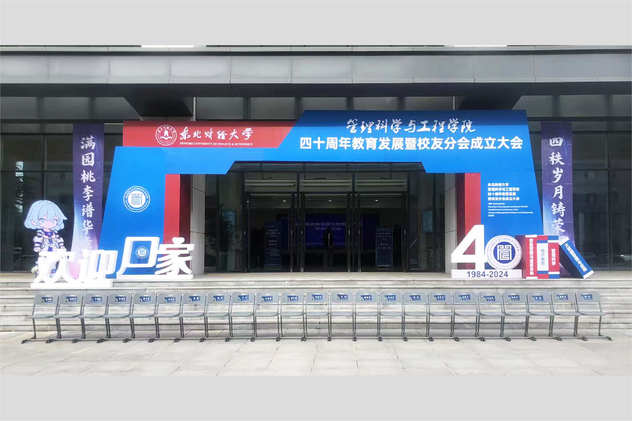 2024 年 11 月 1 日,东北财经大学管理科学与工程学院迎来 40 周年院庆。创意共和设计公司有幸承接此次院庆的设计及会场搭建工作,为这场学术盛会增添光彩,助力学院共同回顾发展历程,展现卓越成就,展望未来前景。