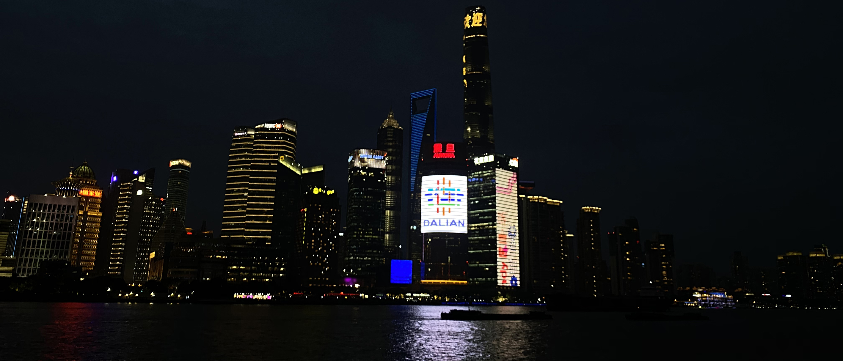 由创意共和设计公司创意设计的大连城市宣传广告在上海外滩大屏点亮。