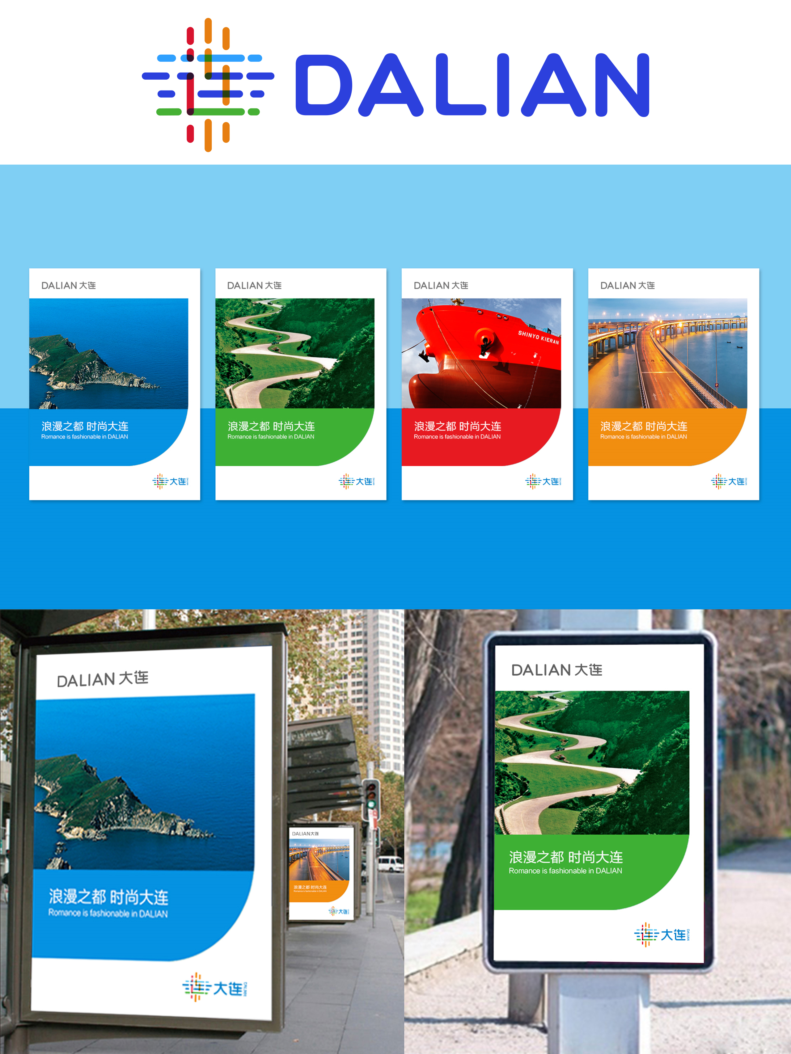 以他们为大连市政府官方新闻发布平台 “大连发布” 所做的品牌设计为例,设计师以大连的 “连” 字为创意主体,从 “连接、纽带、传播” 的含义入手,将连字的笔画经轻微变形后从横、纵两个方向交互延伸开去,象征 “大连发布” 以大连为中心,发布政府信息,提供民生服务,以及实现政民互动、智慧办公等寓意。整体设计中长度各异的基础线条被赋予了不同颜色,纵向红橙两色和三条平行直线,代表大连的灯火和车流;横向有蓝色、海湾蓝、绿色三种颜色和四条平行直线,它们交错相织,体现大连天、海、山、湾的特色环境元素和人文特色,构筑出丰富饱满的城市生活底色,让人们的情感与这些色彩一同绽放,呈现出浪漫、活泼和自由的意识视界。这一设计不仅展现了创意共和设计公司在图文设计上的专业水准,也体现了其对城市文化和精神内核的深刻理解。