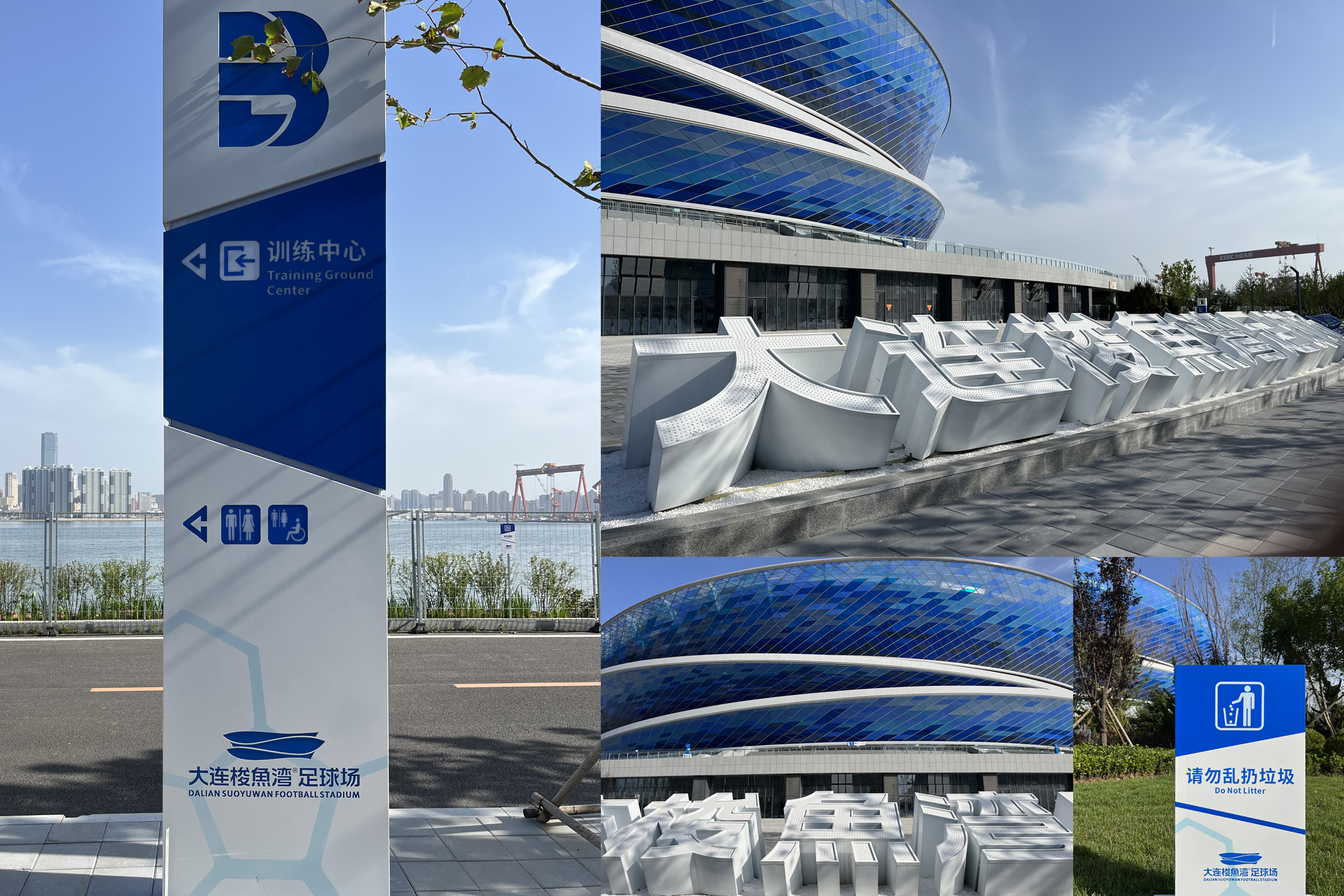 于明龙的 “城市文化符号化设计” 理念在他的众多作品中得到了充分的体现。以大连梭鱼湾足球场品牌全案设计为例,他巧妙地将大连的海洋文化与现代建筑美学相结合,通过独特的视觉符号传递出城市的地域特色与精神内涵。这一设计不仅提升了大连的城市形象,也为城市地标的品牌建设提供了新的思路。