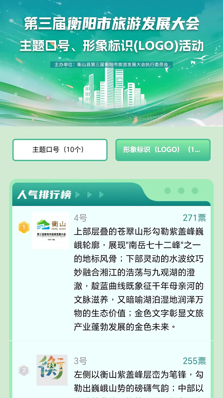 近日,第三届衡阳市旅游发展大会主题口号、形象标识(LOGO)入围作品正在接受公众投票。然而,在投票页面人气榜中出现了一个令人咋舌的现象:疑似抄袭重庆文旅 LOGO 的 “胖都来” 版 LOGO 竟然夺得了人气榜第一名。
