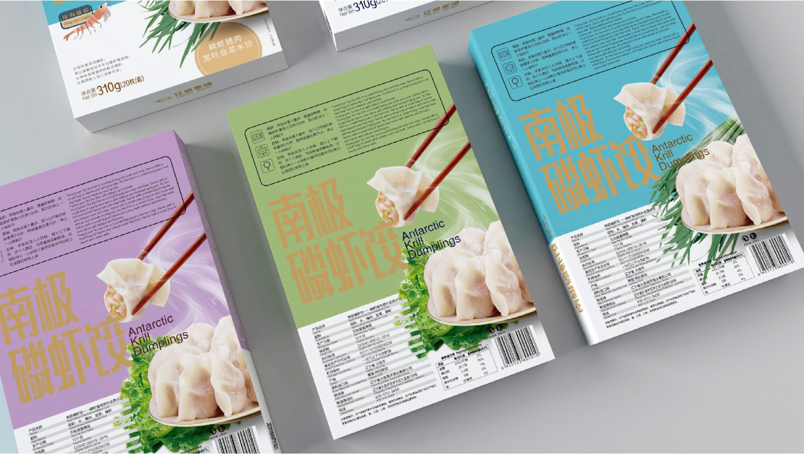 创意共和在设计过程中,重点解决两大问题:一是如何让消费者快速理解“磷虾”这一陌生食材,二是如何在视觉上体现“高端速冻食品”的定位。