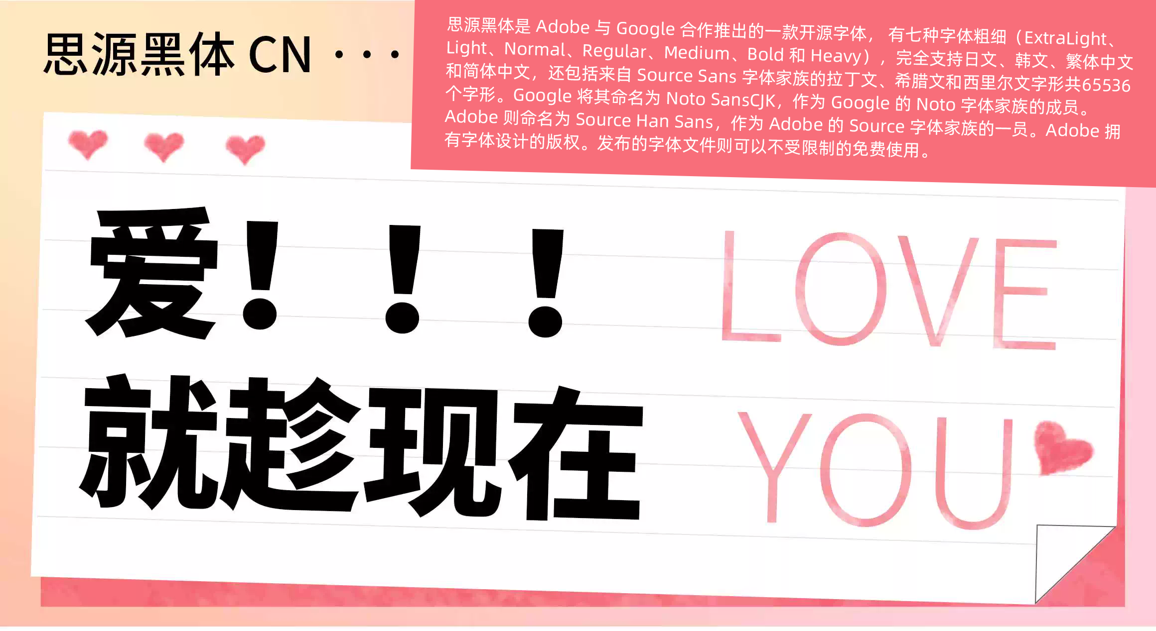 思源黑体-简体中文的官方下载地址(点击),是由谷歌和Adobe联合开发的经典无衬线字体。字体设计简洁现代,笔画细腻流畅,结构均衡稳定,具有极佳的可读性,且字符收录丰富,支持多种语言。标设网认为,思源黑体-简体中文是一款“万能字体”,可适用于网页设计、APP界面、书籍排版、广告宣传、企业VI系统等几乎所有设计场景,无论是正文还是标题都能胜任,是设计师必备的基础字体之一。