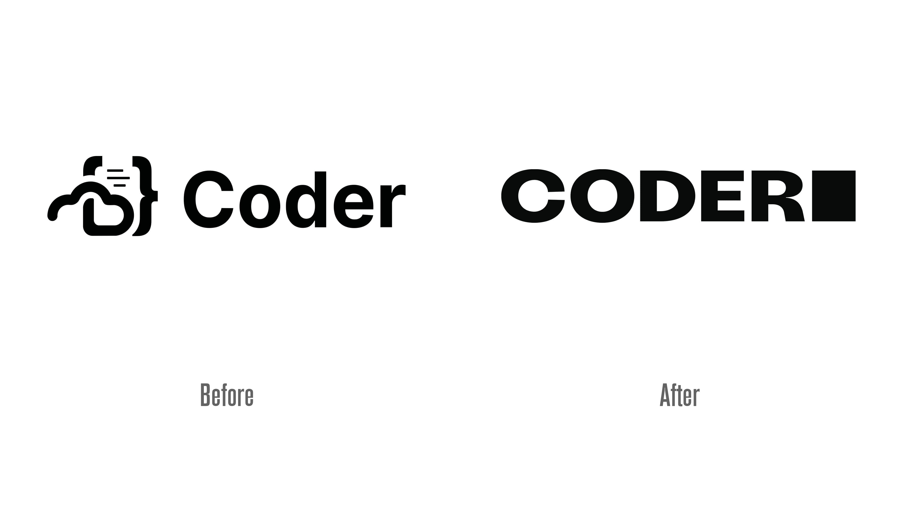 Coder 的新品牌形象由伦敦 Together 设计机构打造。设计团队摒弃旧 LOGO 的复杂元素,采用极简设计:核心由 “Coder” 文字与方形光标组成,光标形似编程终端的闪烁指示器,直观传递技术属性。