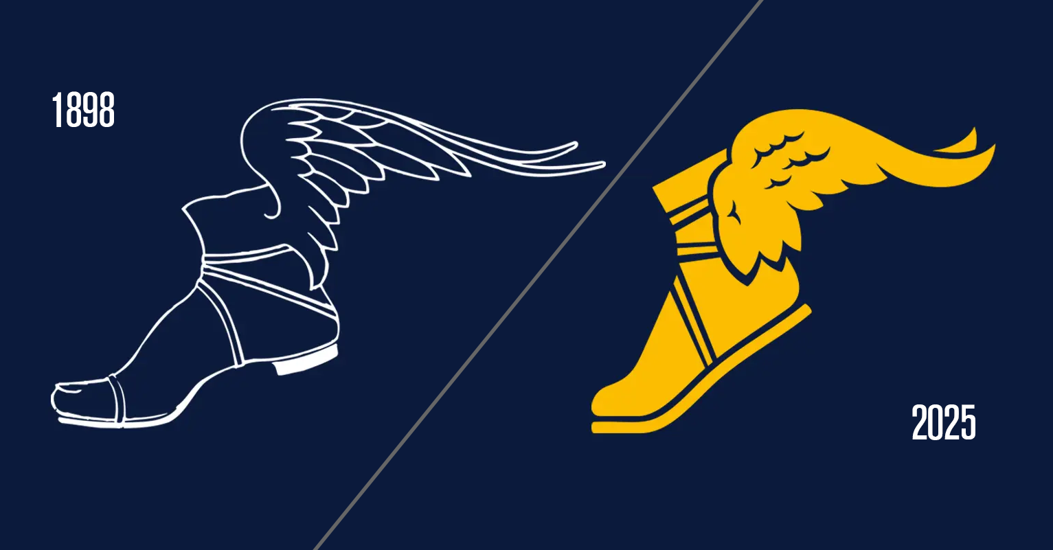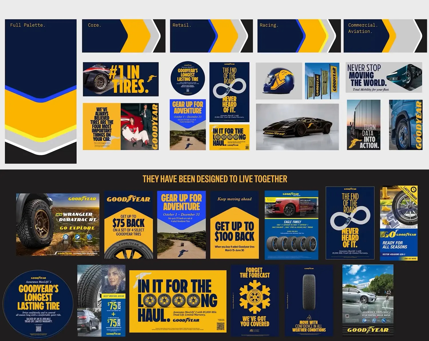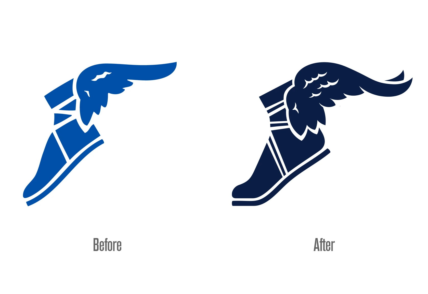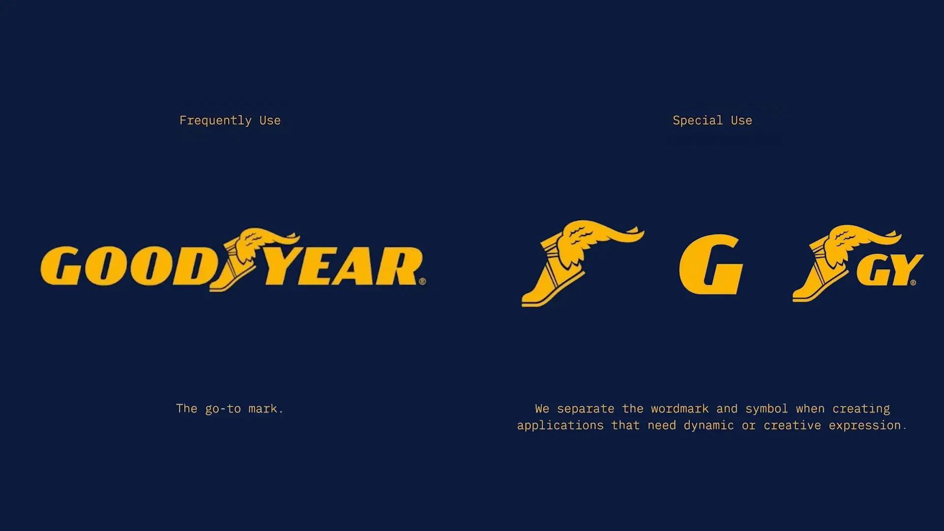 近日固特异启动品牌重塑计划,沿用百年的翼足标志迎来针对性升级。旧版翼足标志中脚尖呈悬空漂浮状态,视觉上略显轻盈抽象;新版设计则着重让前脚掌完整着地,通过调整足部轮廓比例,使整个标志重心下沉,姿态更显稳健扎实。标设网认为,这一核心变化不仅优化了视觉平衡感,更象征着品牌战略从侧重速度感宣传转向强化可靠性能的价值传递,暗含回归产品本质、重塑市场信心的意图。同时,新版翼足在细节上做了精细化处理,羽毛部分从旧版的紧凑线条变为分层舒展的形态,每片羽毛边缘增加细腻弧度与留白间隙,增强动态流动感;鞋身部分不仅增厚轮廓,还在鞋跟处加入微妙阴影渐变,配合整体前倾的动势,既保留了翼足的飞跃象征,又增添了工业产品的厚重质感。