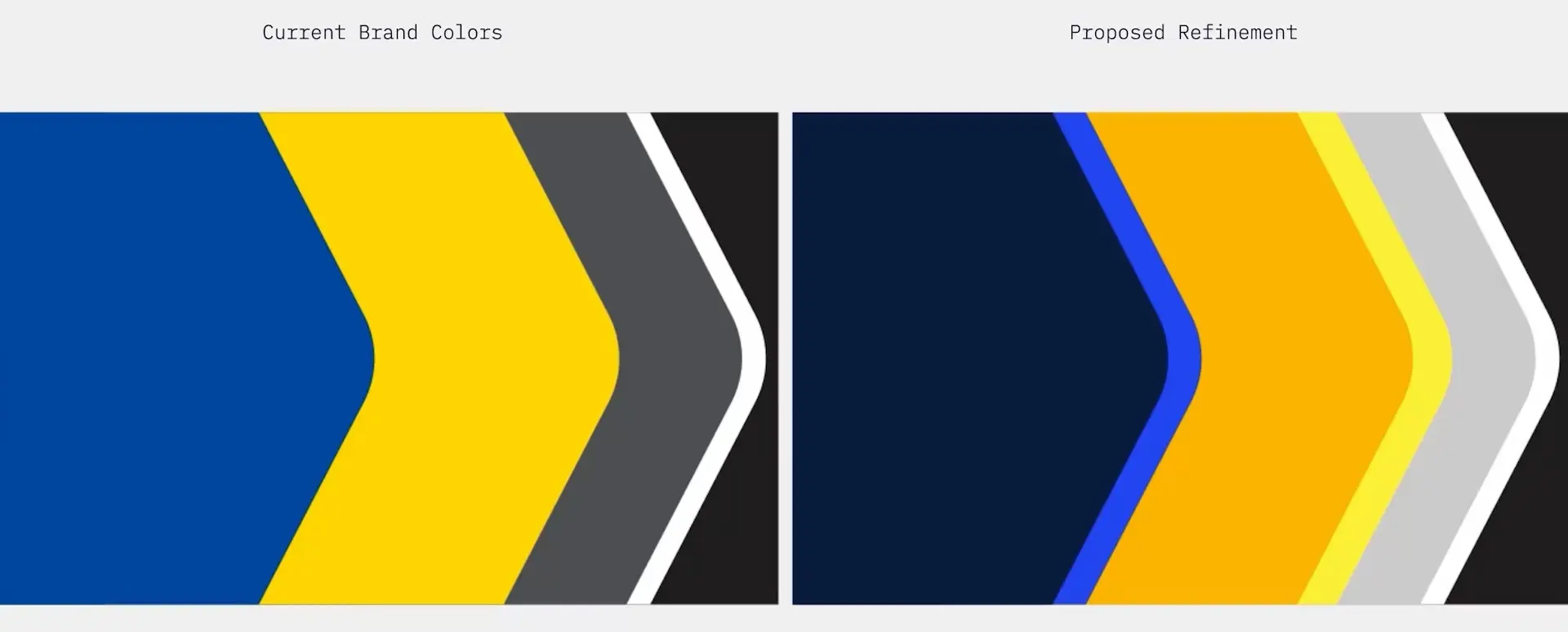 此次升级还将品牌元素模块化,翼足、完整字标及简化G字标可独立使用,适应数字化多屏传播场景。配色上,亮蓝升级为竞速海军蓝,黄色调整为奖杯金。标设网认为,新配色更契合现代工业品牌趋势,深蓝体现科技专业,金黄象征荣耀速度,高对比度让标志在各类场景中都清晰易识别。
