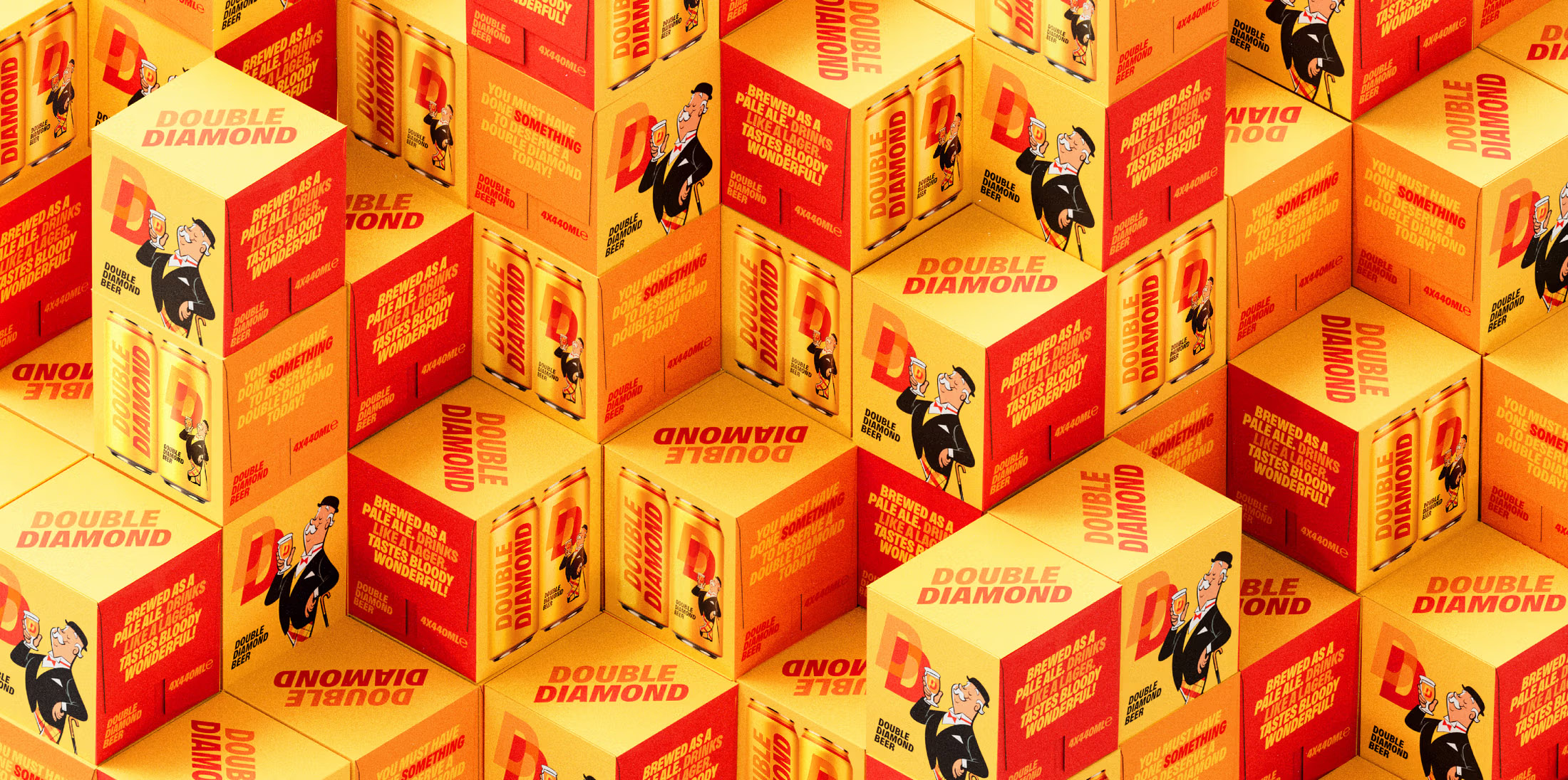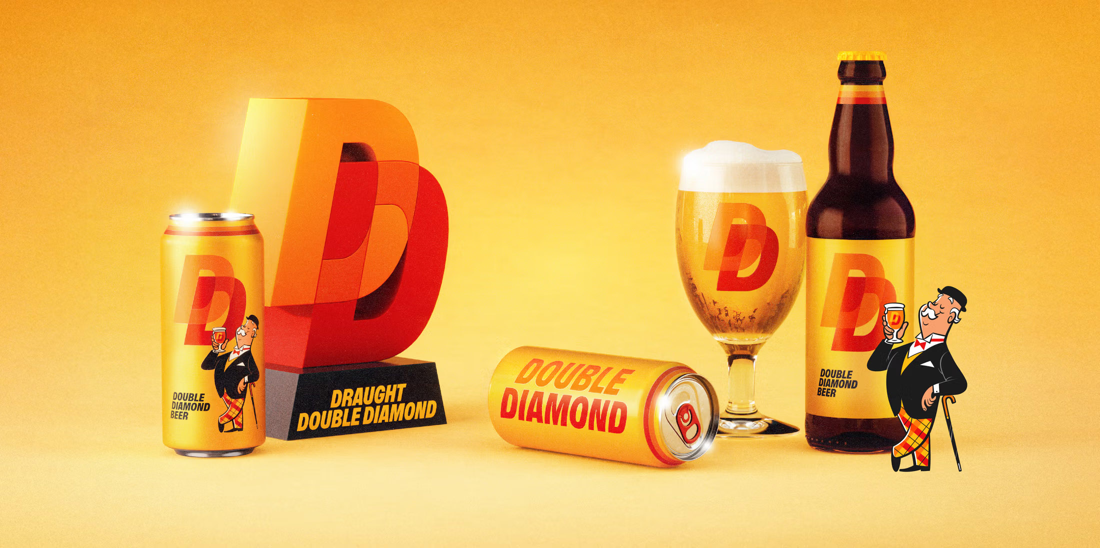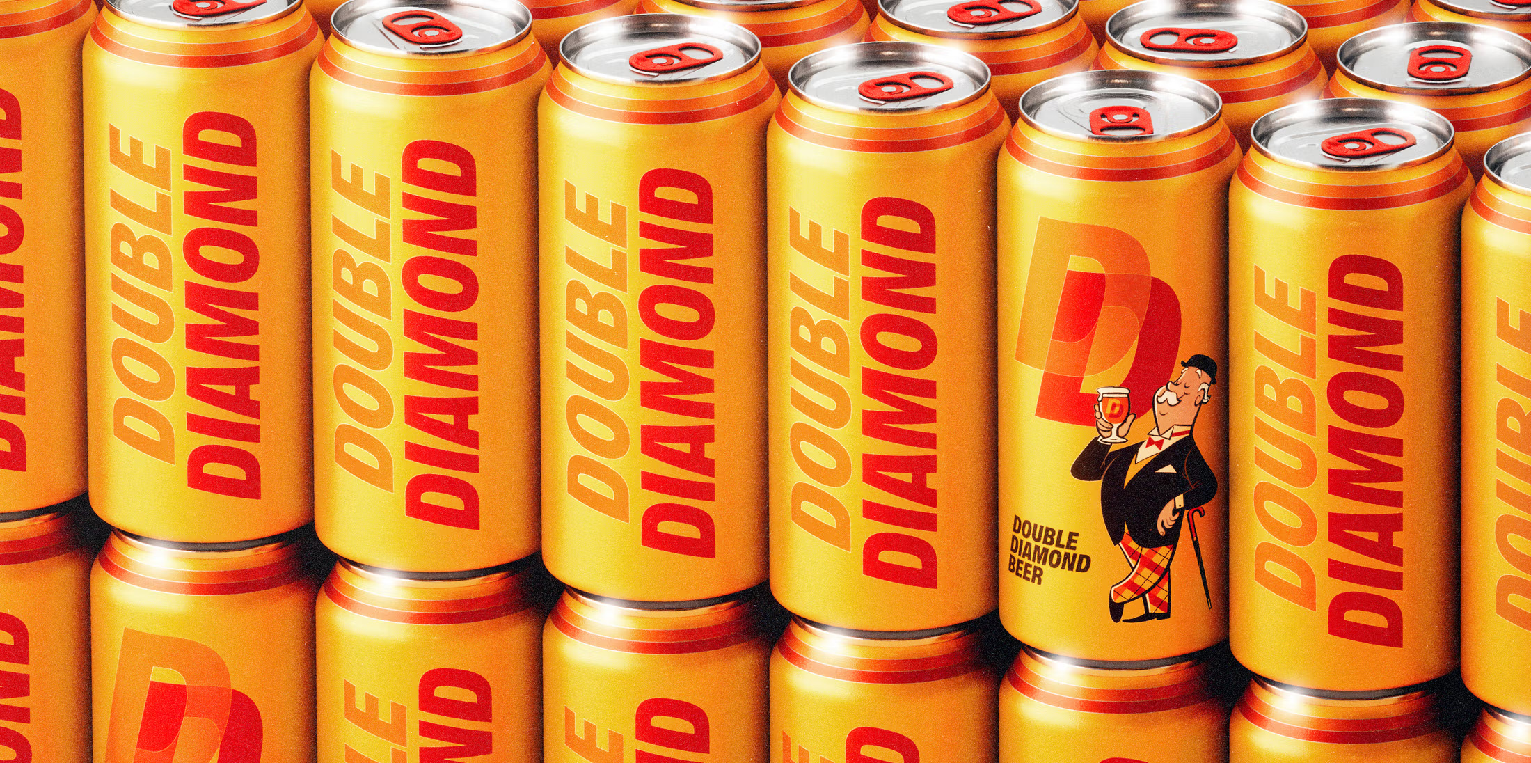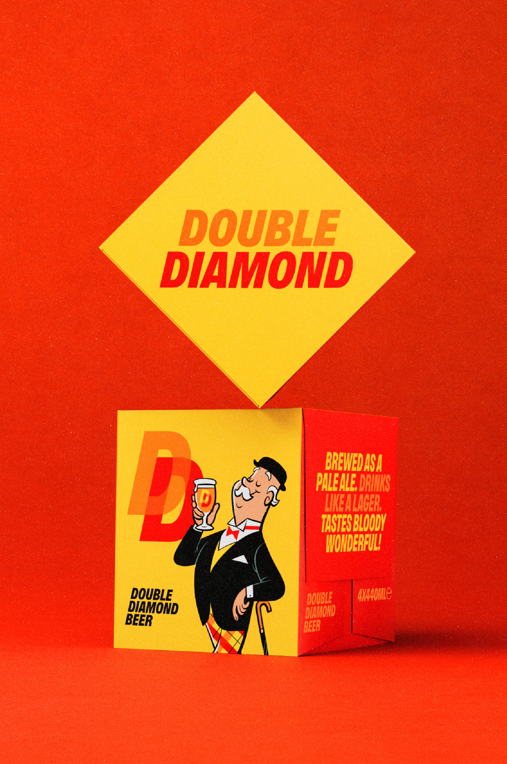 Double Diamond是20世纪中期英国标志性的艾尔啤酒品牌,如今在创始人后代Jamie Allsopp的带领下由Allsopp brewery推动品牌复兴。此次复兴不仅更新了啤酒配方、降低酒精含量,更推出了全新的品牌视觉形象,引发设计界和啤酒爱好者的广泛关注。