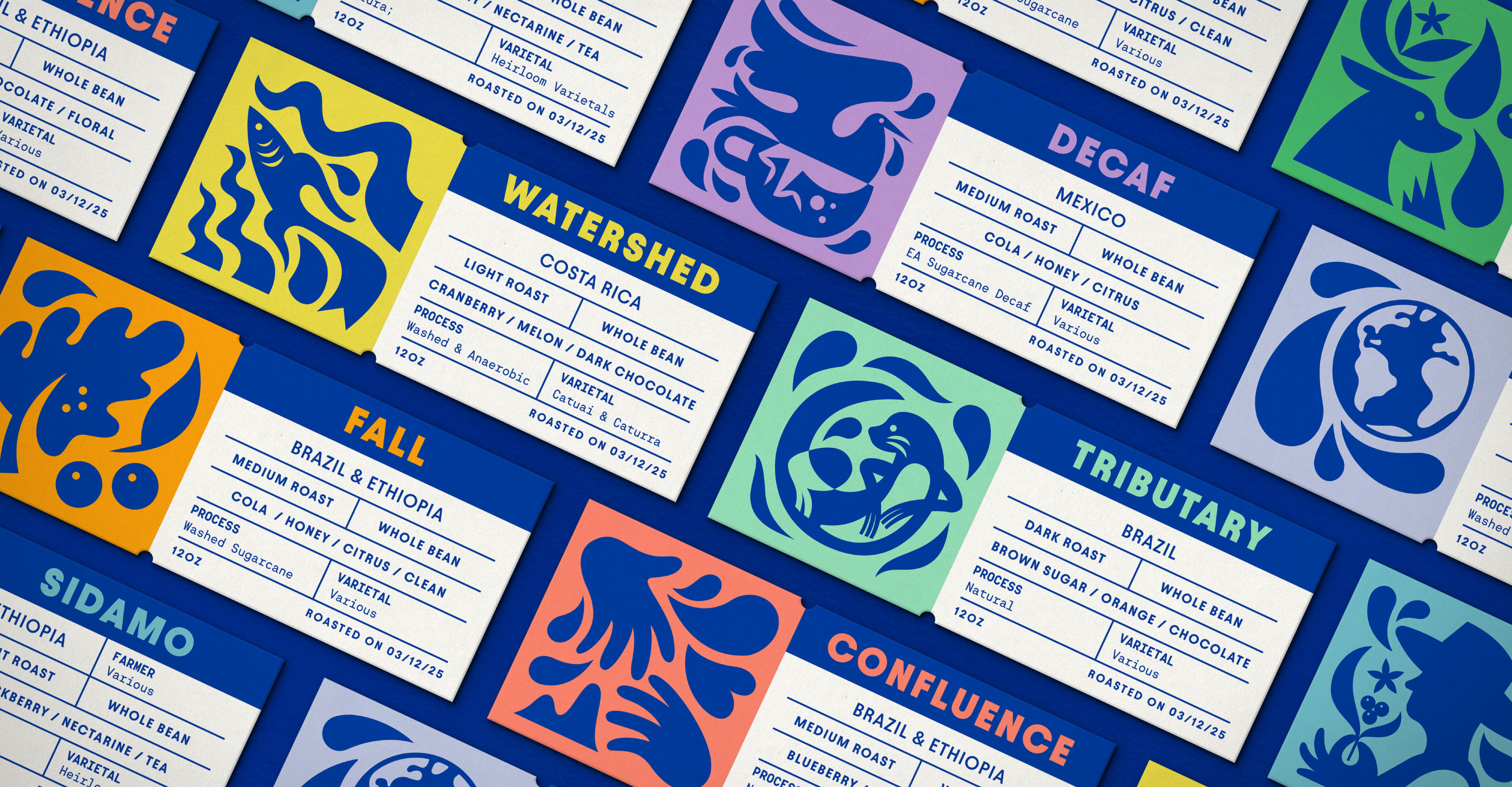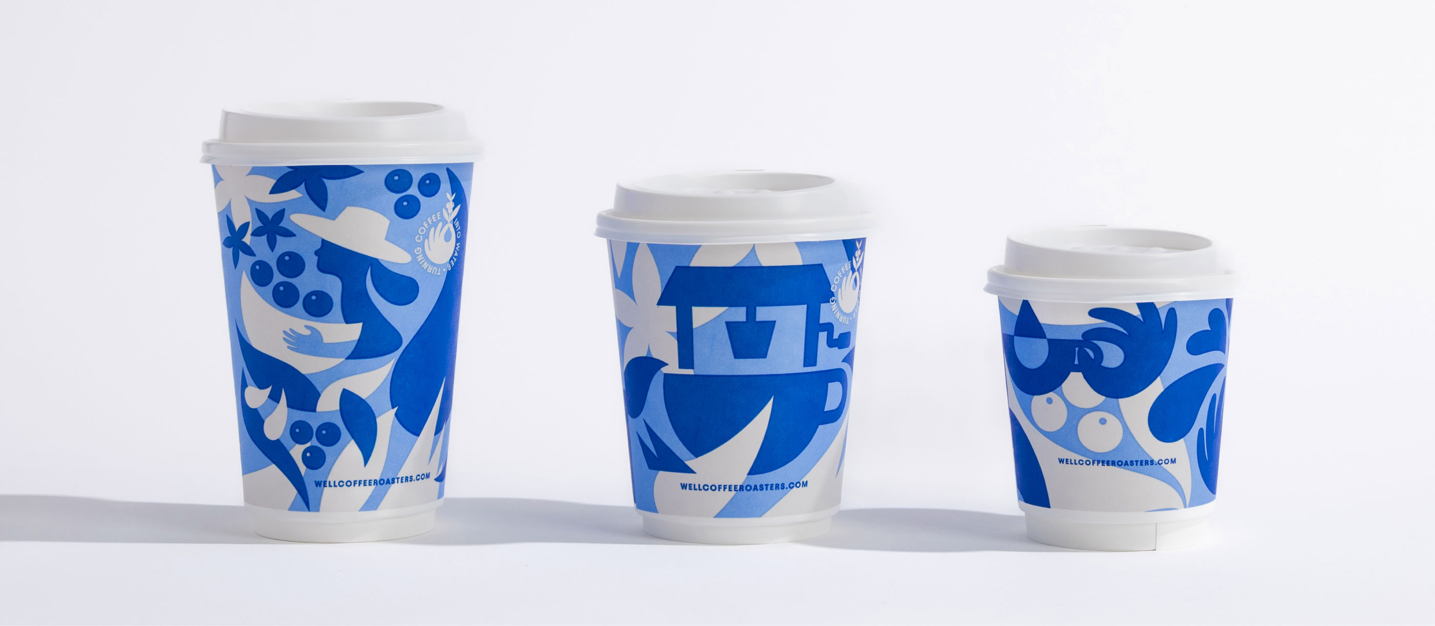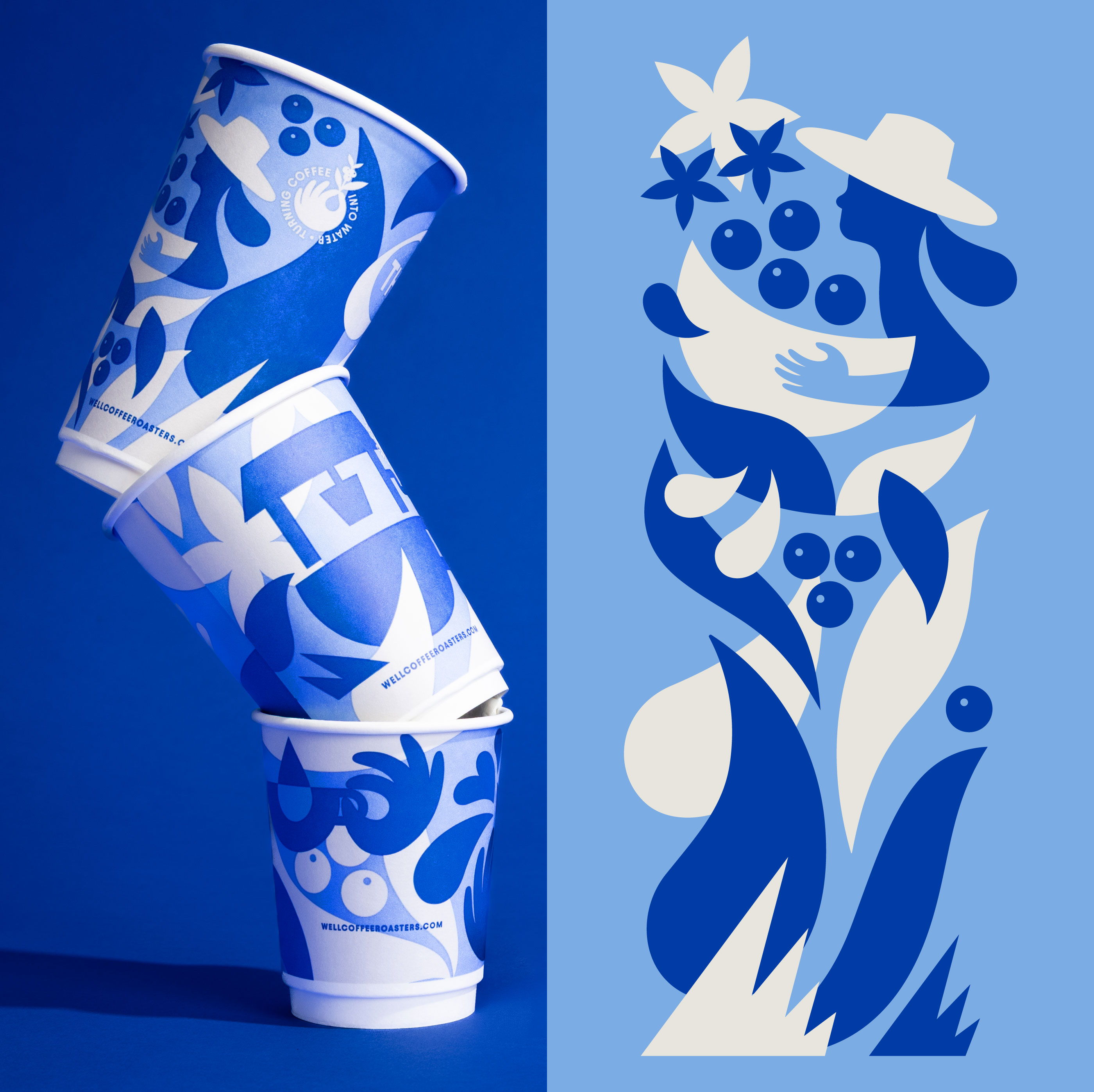 标设网认为,新视觉系统的符号设计极具融合性。涵盖水滴、豆子、手、嫩芽四类核心元素,咖啡枝逐渐转化为水滴的图案,手托嫩芽的隐喻造型,既串联起咖啡生产与净水援助的关联,也传递出关怀与连接的品牌温度。插画部分选用真实的咖啡师、农户和受助者故事,让品牌公益不再抽象。文字部分选用 Avantt Bold 字体,在柔和的流动感中加入几何结构的平衡,让视觉呈现既有人文温度,又不失规整感。