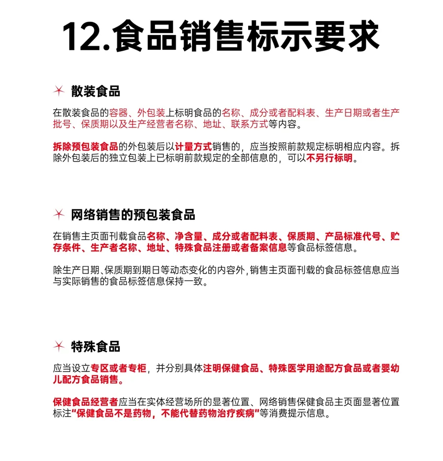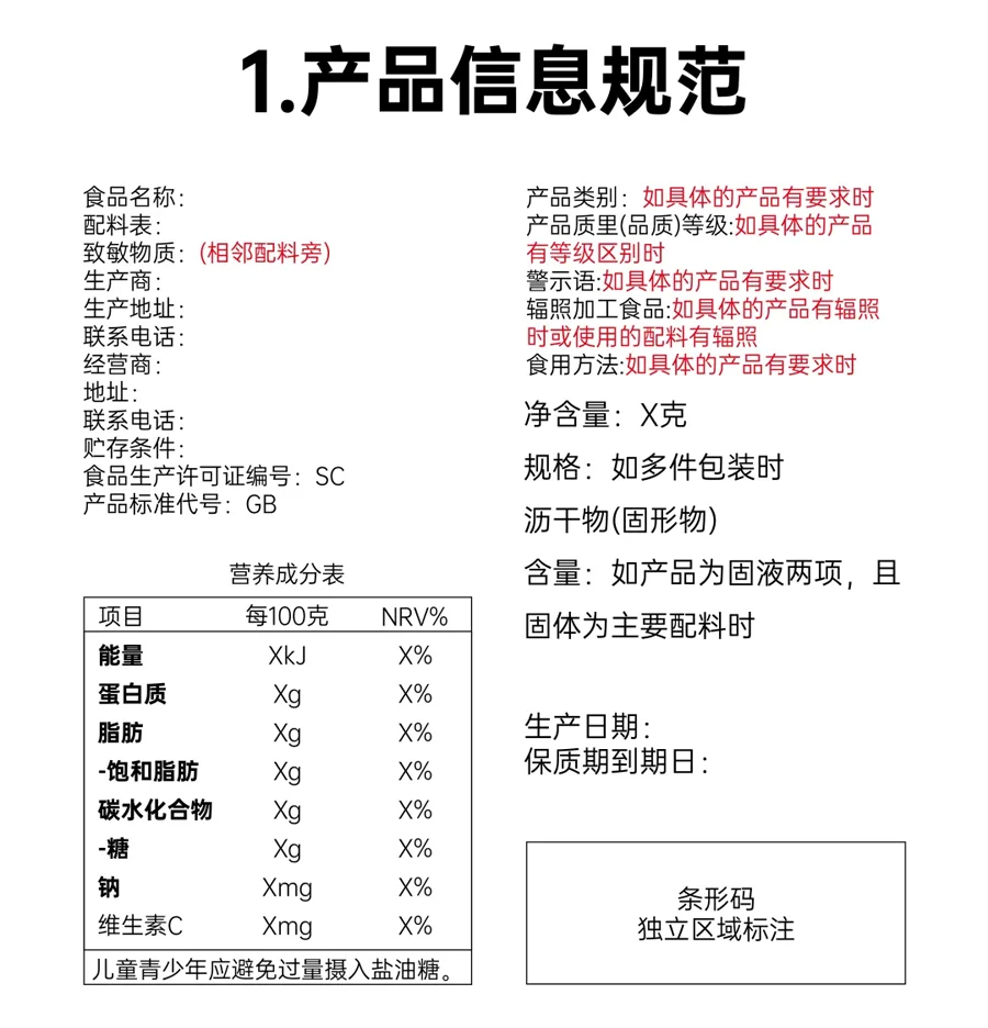 ※ 规范食品名称、日期、配料表、生产者经营者信息、净含量、食品生产许可证编号等多项标示内容,让标签信息传递更精准。