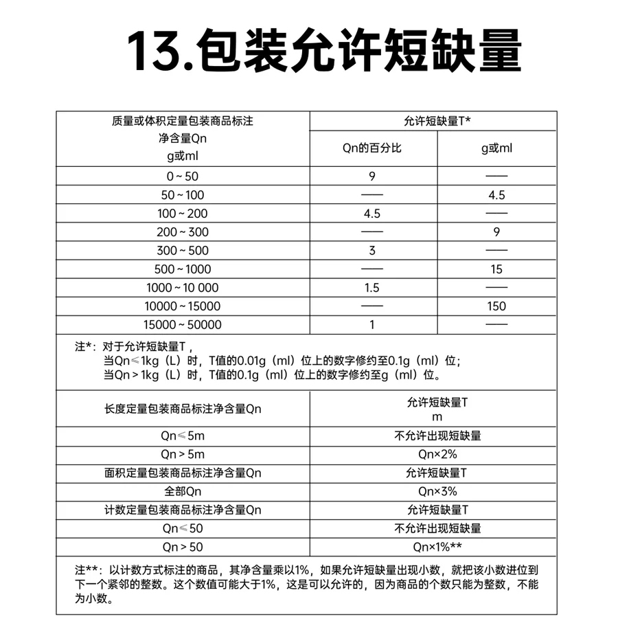 3. 允许短缺量:质量 / 体积类:0-50g/mL 允许短缺量 9%,50-100g/mL 为 4.5g/mL,100-200g/mL 为 4.5% 等;长度类:≤5m 不允许短缺,>5m 为 2%;面积类为 3%;计数类:≤50 件不允许短缺,>50 件为 1%(小数进位)。创意共和认为,允许短缺量的明确量化标准,既平衡了生产合理误差与消费者权益,也为设计师在净含量视觉呈现上提供了参考,避免因过度追求 “满装感” 导致企业违规。
