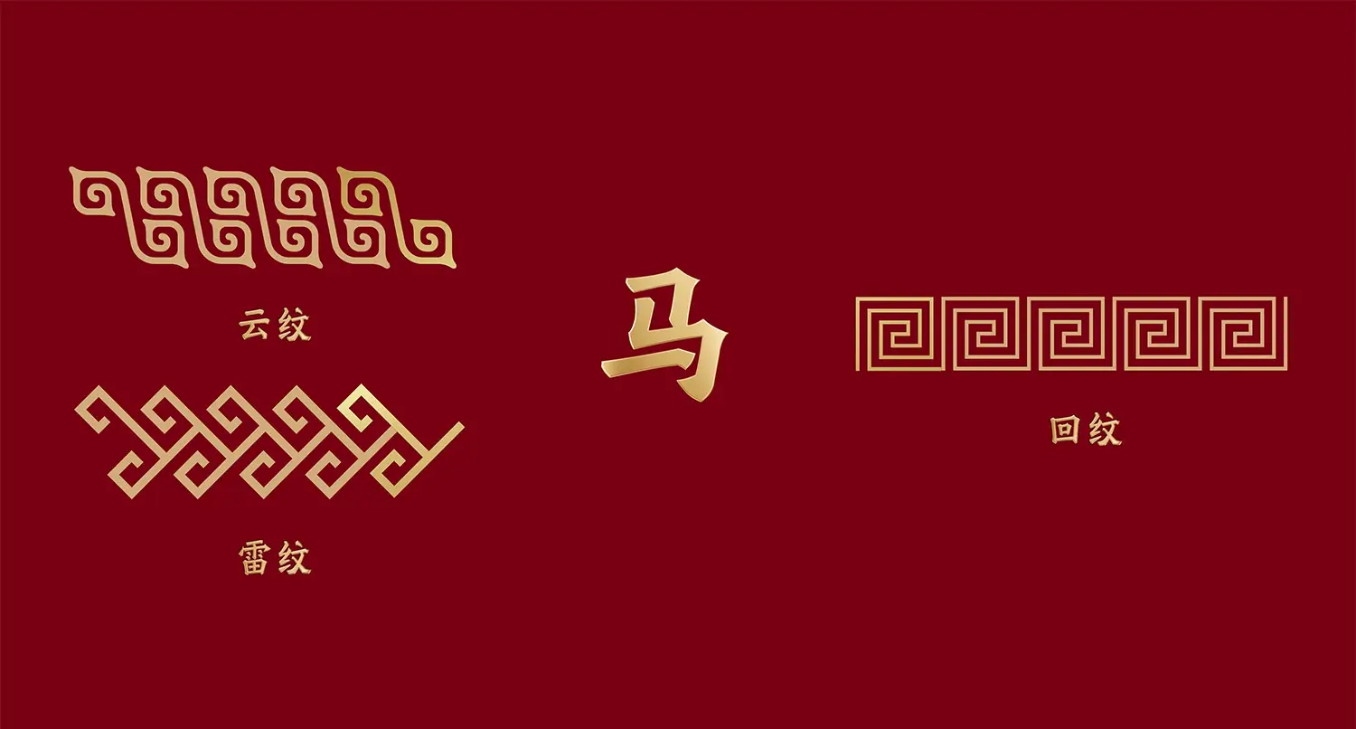 标设网发现,春晚主标识的设计充分呼应主题,提炼四马齐驱的创意核心,将传统云纹、雷纹、回纹等经典元素融入其中,勾勒出骏马齐头并进、拾级而上的视觉效果。全新打造的骐骥驰骋纹可灵活延展变换,铺展出万马奔腾的生动画面,既彰显传统美学韵味,又不失奔腾奋进的时代气息。这种设计思路让春晚标识既具辨识度,又承载着丰富的文化内涵,成为传统元素现代转化的典型案例。