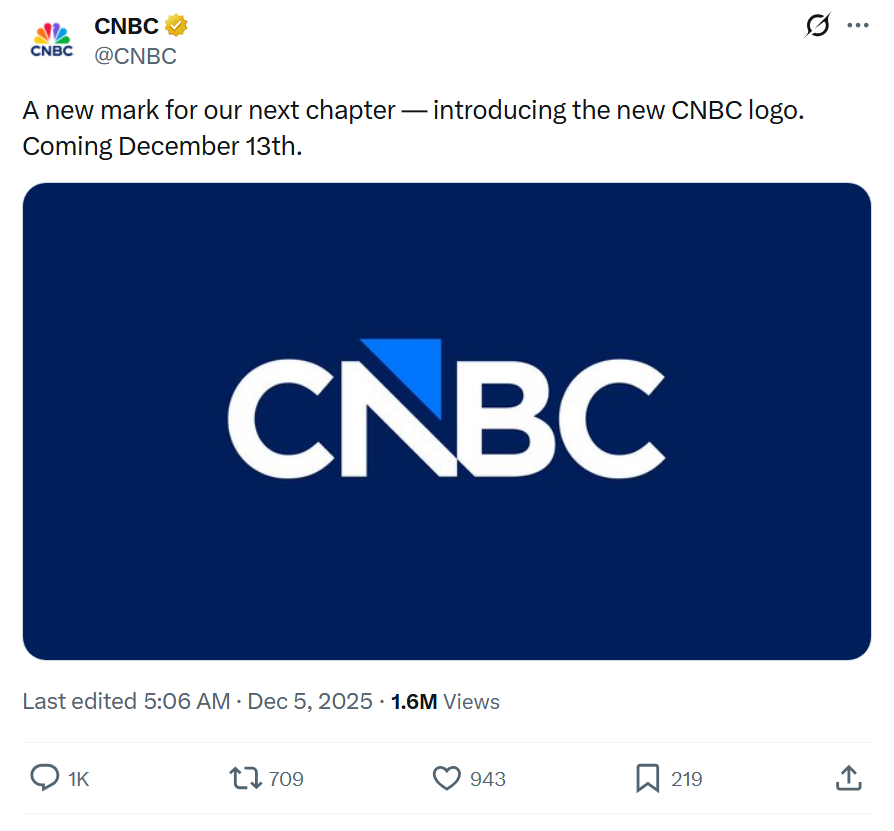 CNBC 是一家以市场财经报道和商业新闻为主的国际媒体品牌,成立以来长期采用带有 NBC 孔雀彩羽的标识符号,这一视觉符号伴随其品牌认知多年,成为其 logo 设计的重要记忆点。此次变更缘于母公司 Comcast 将 NBCUniversal 旗下包括 CNBC 在内的有线频道拆分成新公司 Versant Media,这意味着 CNBC 不再拥有使用具代表性的孔雀图案的权利。