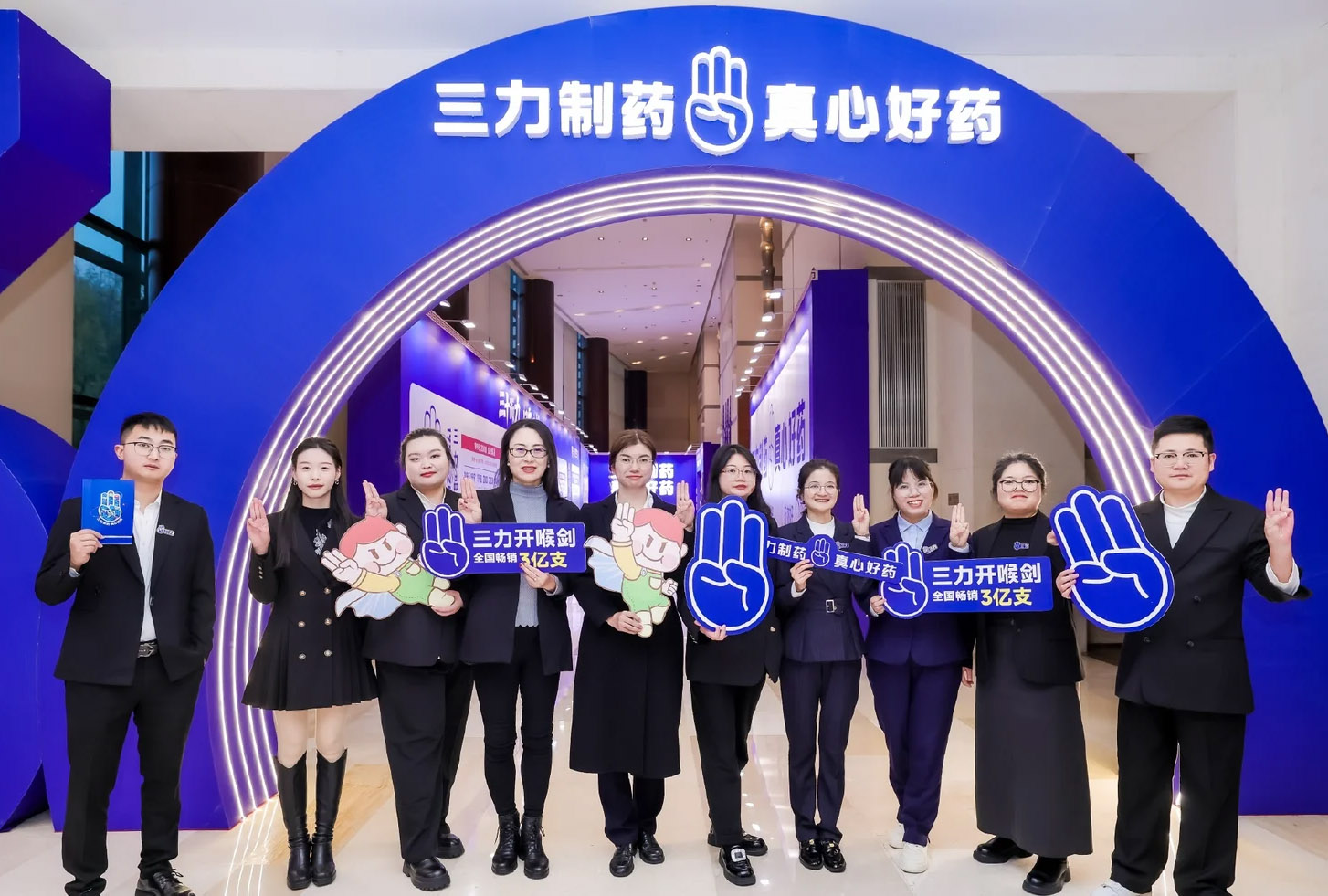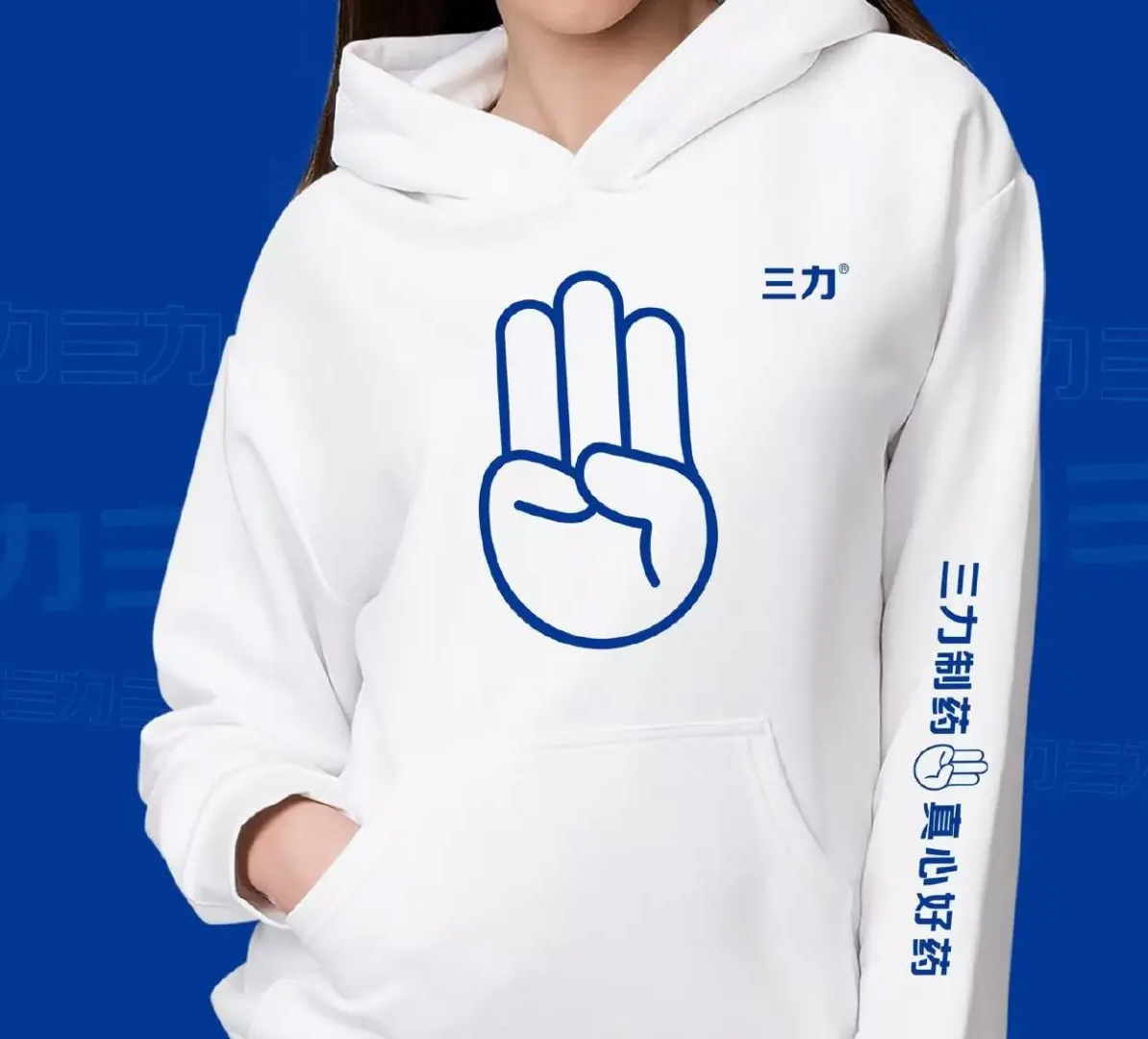 之前三力制药的旧标是 “贵州三力” 搭配图形标识,而新标里的手势符号,已出现在品牌多个场景中:活动现场的拱门、员工的卫衣、产品包装乃至企业建筑的标识。标设网发现,这些 VI 设计的落地,是将新符号转化为品牌的视觉语言。无论终端场景还是内部物料,呈现的都是同一个符号,时间久了,消费者可能会将这个手势与三力制药建立关联,这也是其布局视觉统一的方向之一。