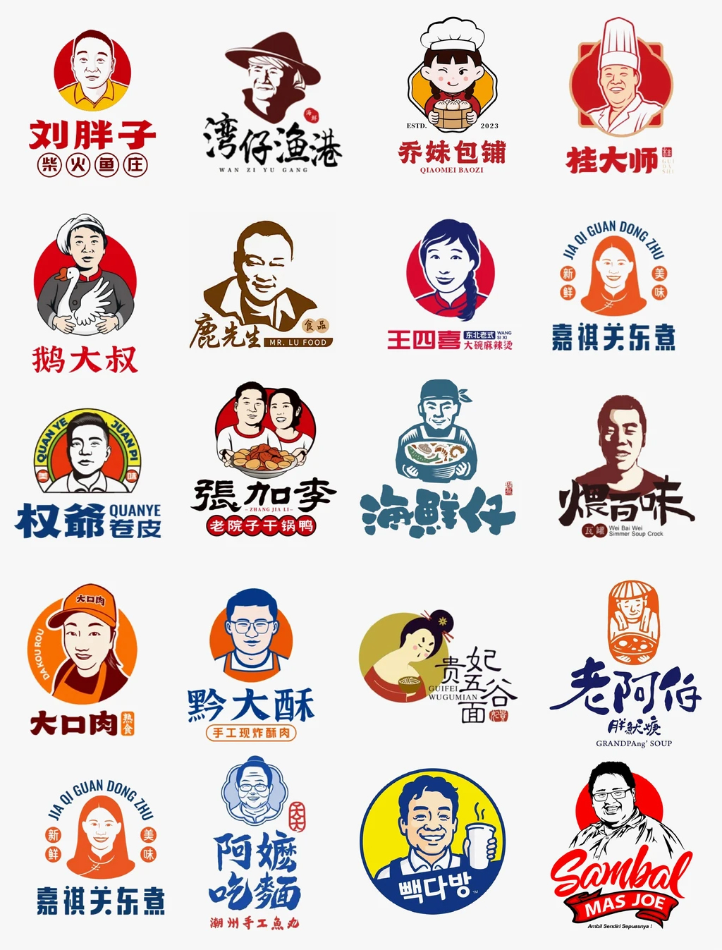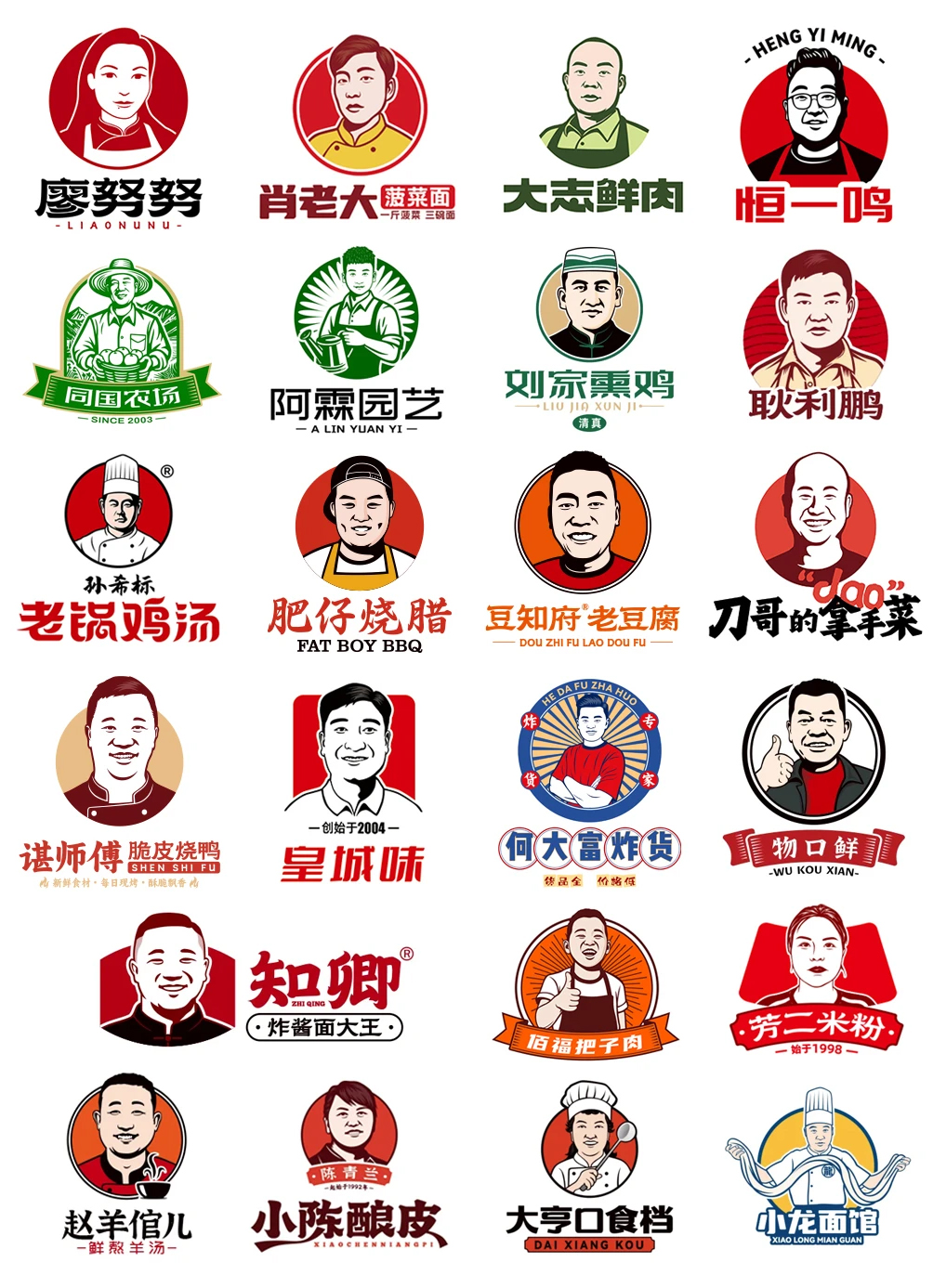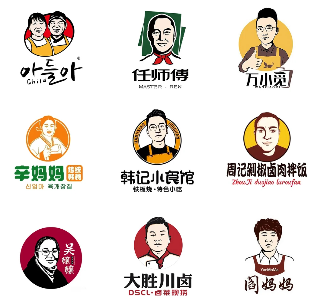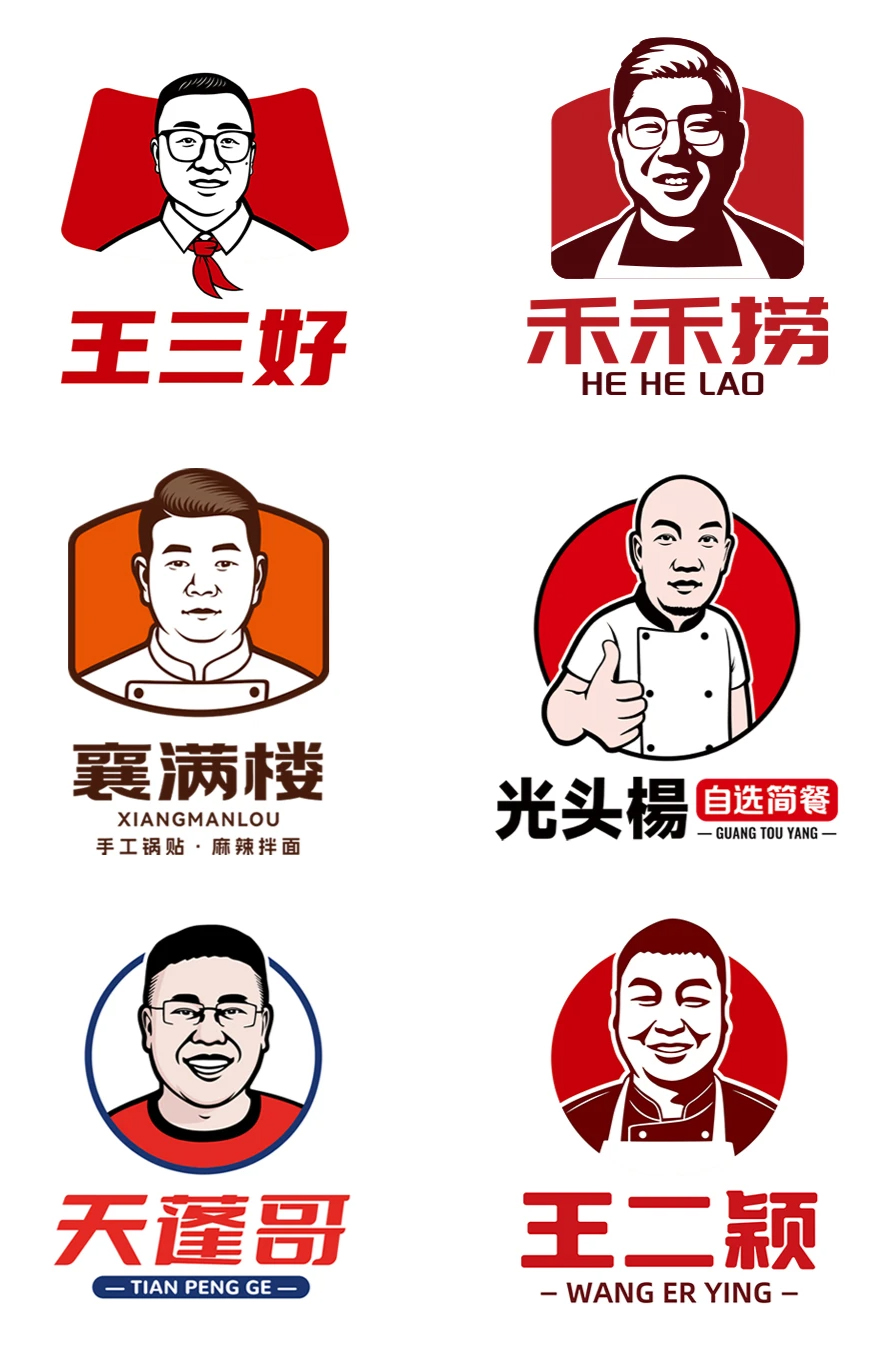 附:餐饮行业创始人头像LOGO及卡通人物头像LOGO设计案例大全参考