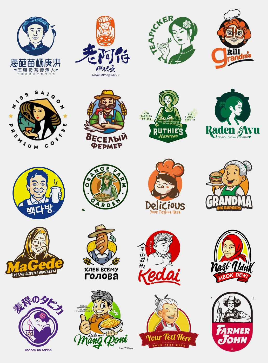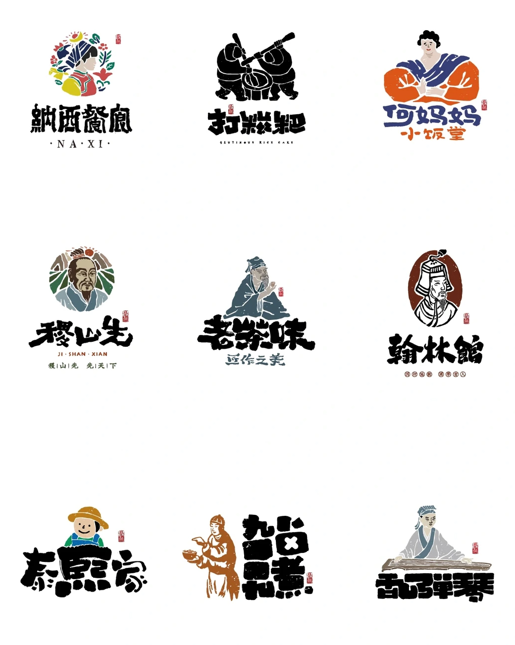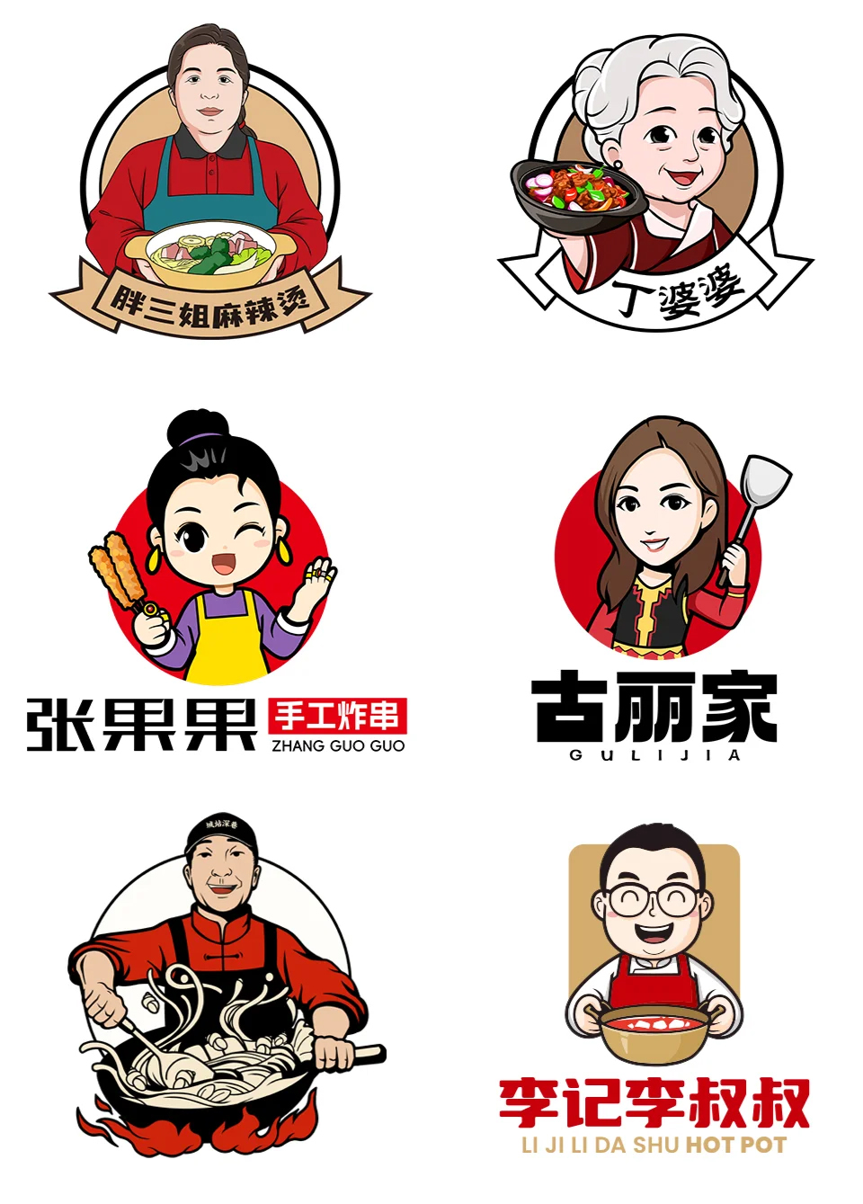 这些案例显示,通过简化、现代化、统一配色和自然表情,餐饮人物LOGO可以有效避免土味,同时保持品牌辨识度和长期适用性。
