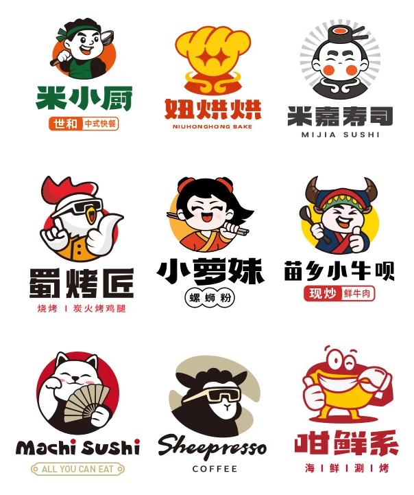 标设网整理了部分餐饮人物LOGO案例,展示如何避免土味: