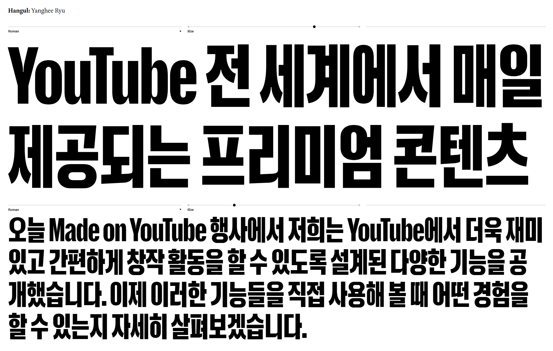 YouTube 创建于 2005 年,是全球最大的在线视频平台之一,覆盖超过百个国家和地区。作为 Google 旗下的重要产品,YouTube 长期通过产品体验、视觉系统和品牌设计持续优化用户感知。字体系统的持续扩展,正是其品牌建设中不可忽视的一环。