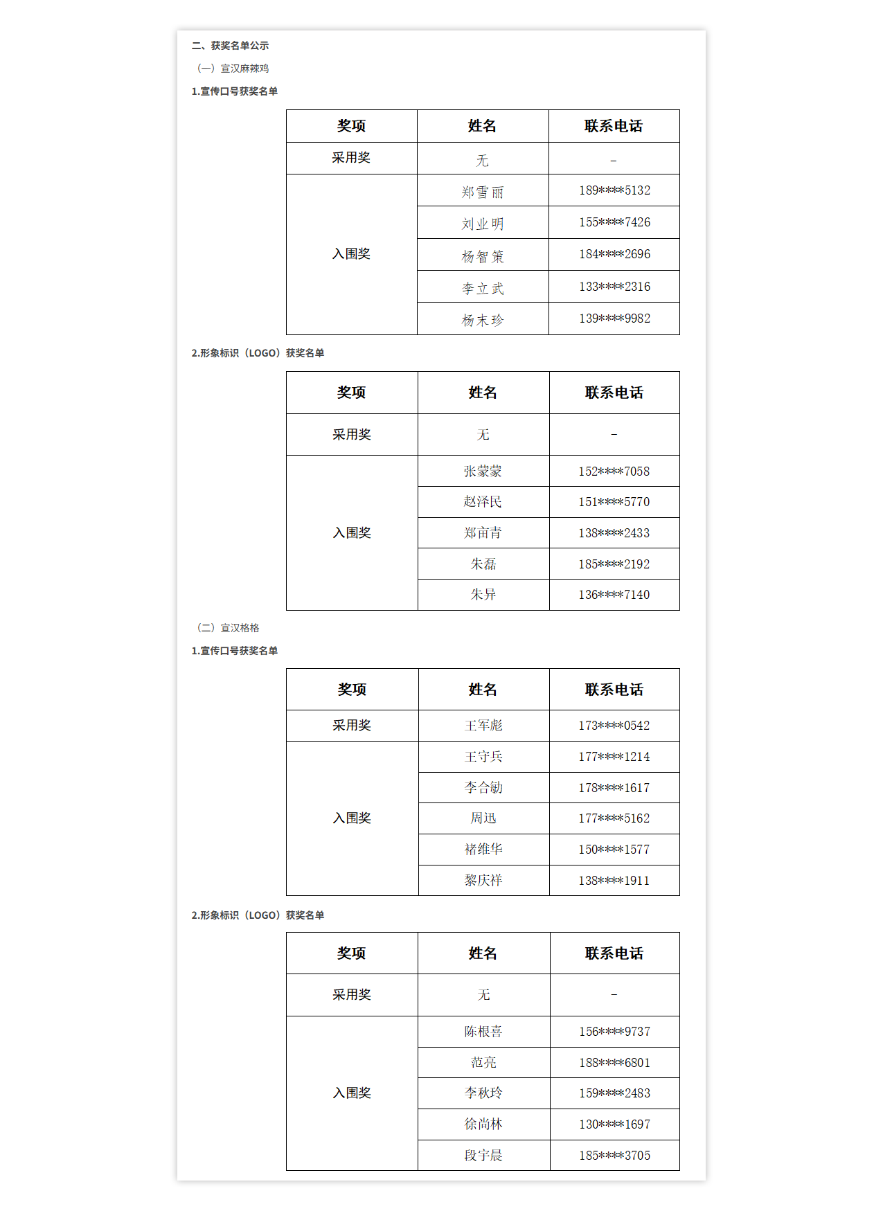 公示的获奖名单中,形象标识采用奖都显示“空缺”