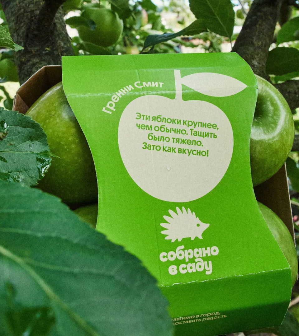 该项目由ESH gruppa设计团队主导,涵盖艺术指导、LOGO设计、文案体系与动态视觉内容。Sobirano B Sadu并未试图改变苹果的本质,而是通过刺猬IP角色与品种叙事,让普通水果的购买过程变得更直观、更轻松,也更有记忆点。