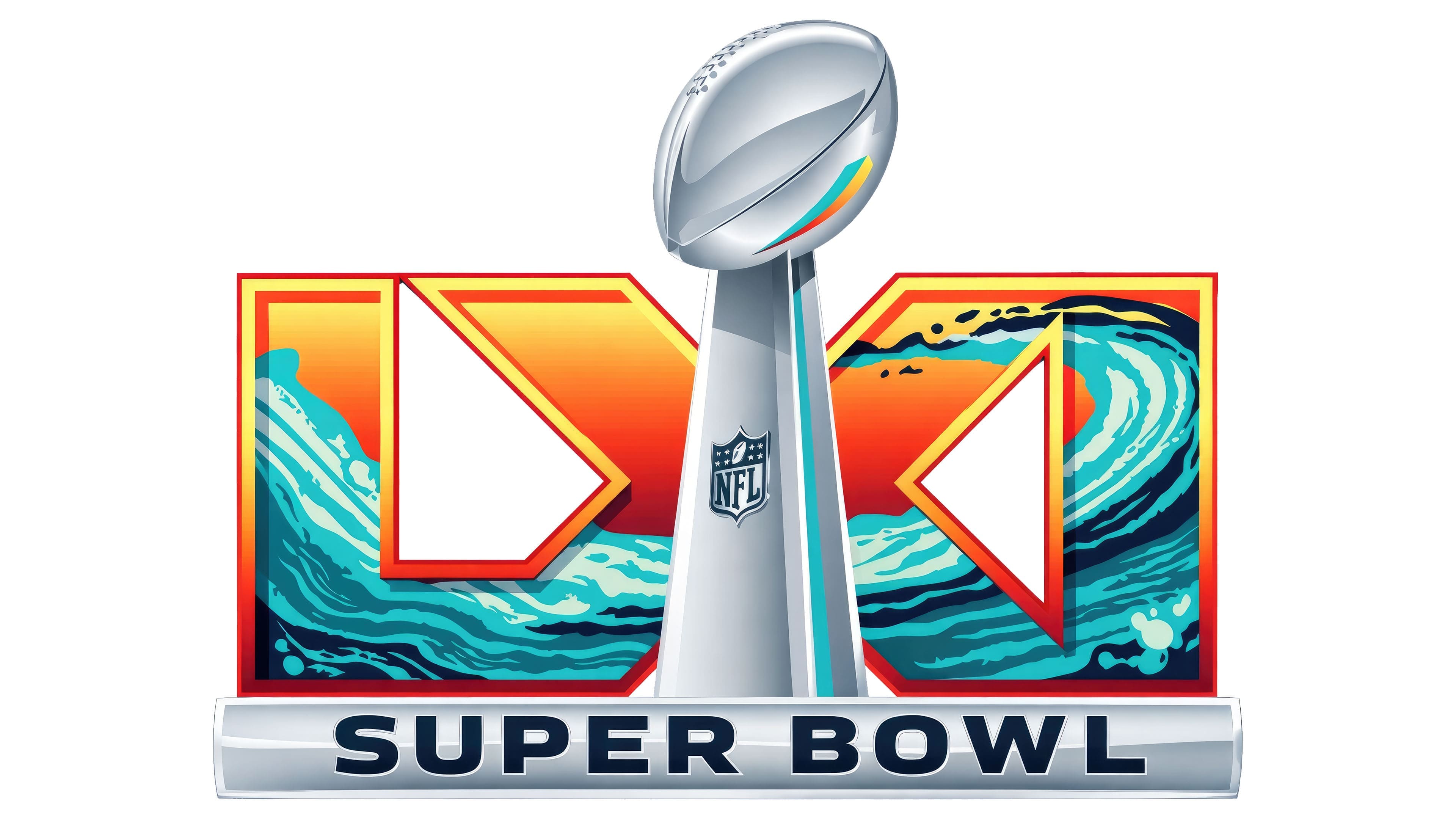 贯穿数字的蓝绿色曲线不仅象征临海地理关系,同时通过更具质感的光影处理增强层次,使图形在静态中产生流动感。相较以往更偏平面的超级碗标志,本次设计明显强化空间深度与材质表现,试图建立更具沉浸感的赛事视觉体验。