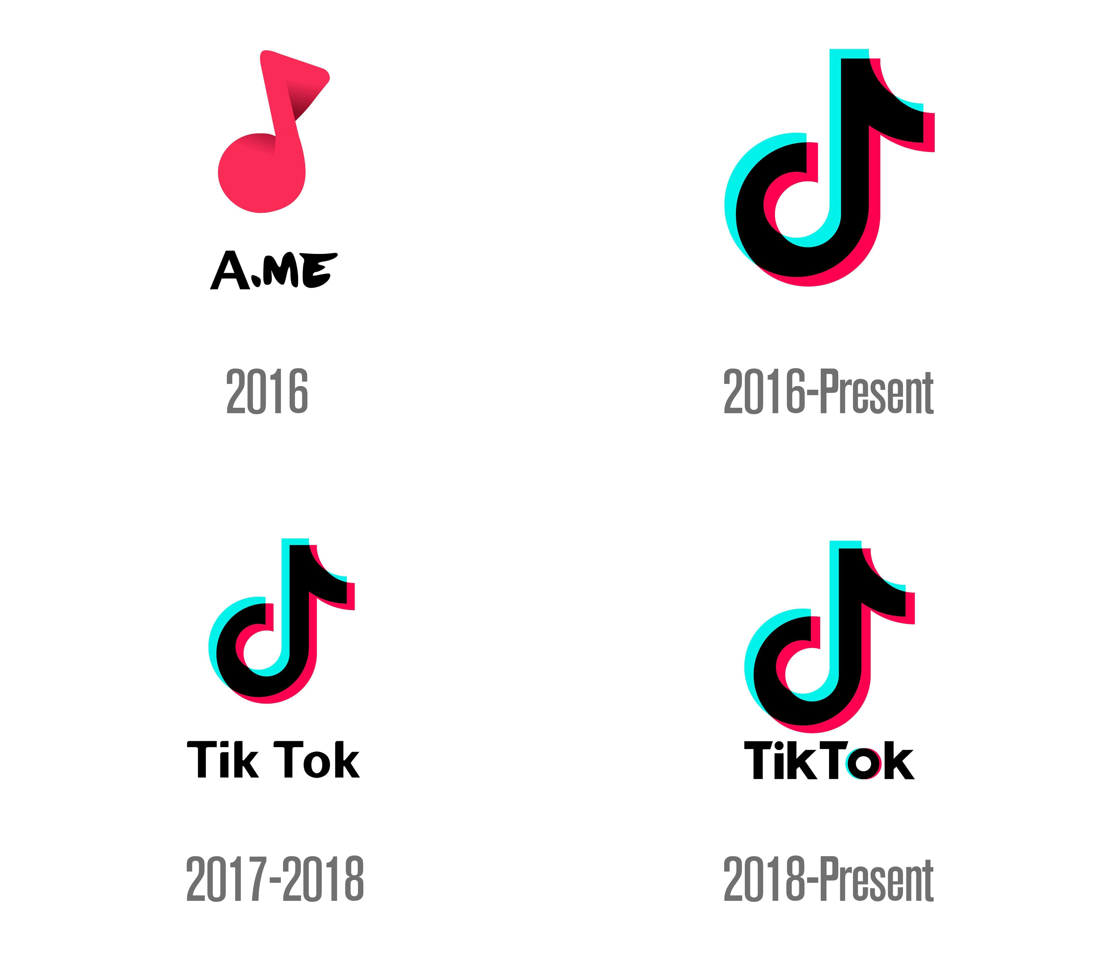 2017年前后,品牌名称开始与图形组合使用,以解决国际传播中的识别问题。2018年整合Musical.ly后,视觉体系进一步统一,字标细节被优化,字母比例、圆点形态与间距都进行了微调,使其更适配移动端显示。