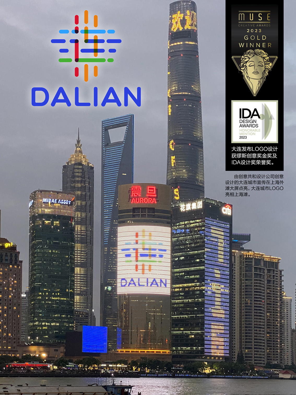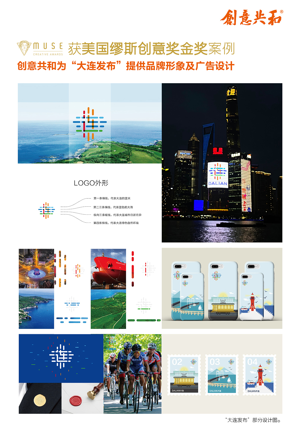 大连发布LOGO设计荣获缪斯创意奖金奖及IDA设计奖荣誉奖。该LOGO为大连市政府新闻发布平台量身打造,以“连”字为核心,用简洁的线条勾勒形态,展现大连开放、包容与连接的精神,凸显其在全球化时代流动与连接的关键地位,红、橙、蓝、绿的色彩组合,传递出城市的活力与生态魅力等价值。创意共和认为,政务类品牌设计要兼具权威性与亲和力,让公众感受到政府服务的温度。