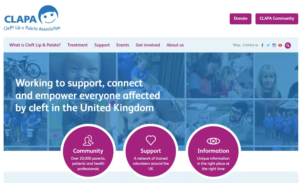 CLAPA成立于1979年,由家长与医疗专业人士共同发起,目前已发展为英国最具影响力的唇腭裂慈善机构之一。其服务覆盖孕期至成年阶段,提供信息支持、心理陪伴以及社群连接,同时与NHS唇腭裂医疗团队及研究机构长期合作。