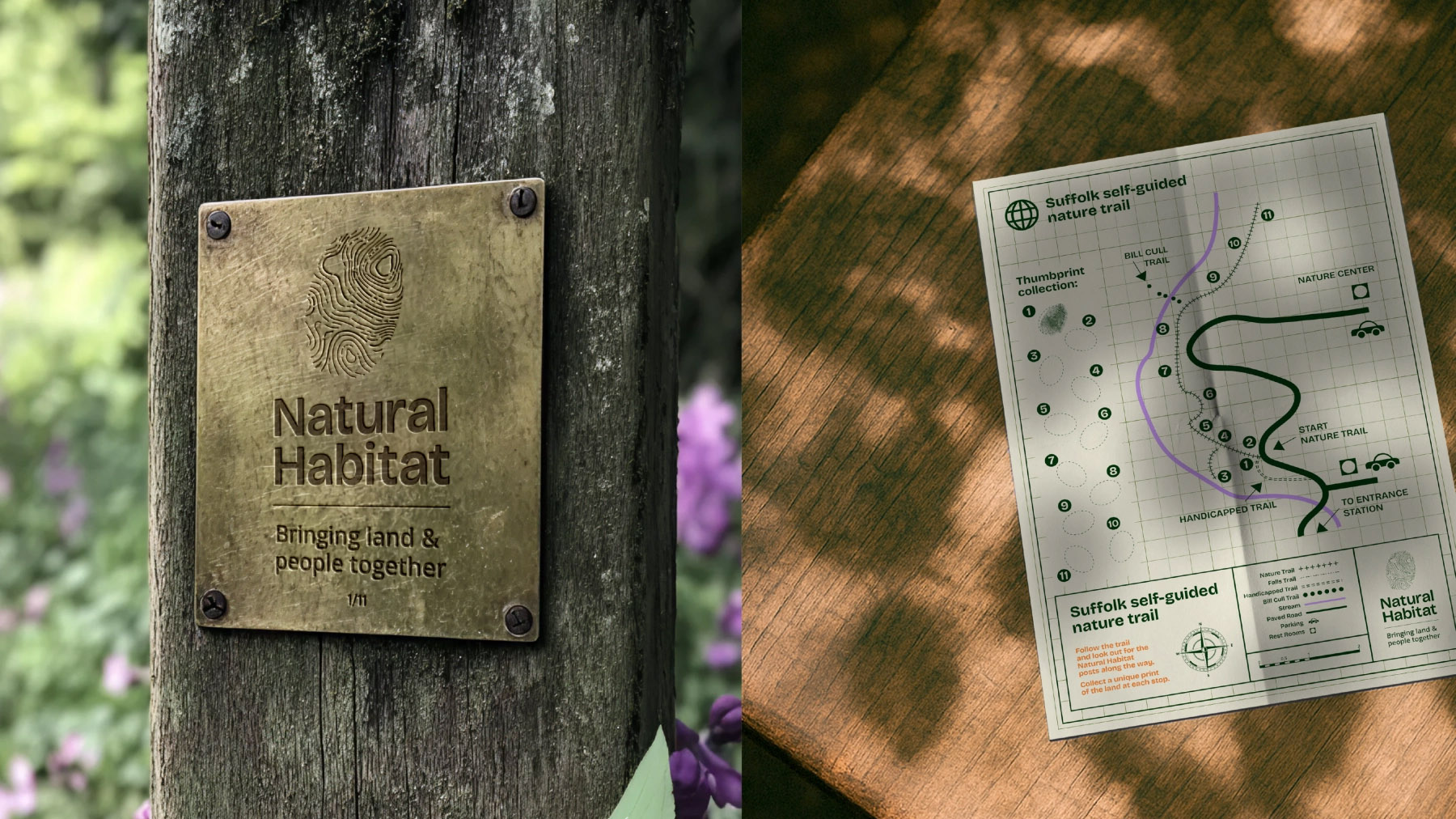 新标识将指纹这一具有人类身份象征的元素,与地图中的地形纹理结合,形成独特的视觉符号。每一个Natural Habitat项目地点,都拥有基于当地地貌生成的专属图形,使品牌在统一中保持差异。这种生成式LOGO设计思路,在当前品牌视觉系统设计中具有较强的识别优势。