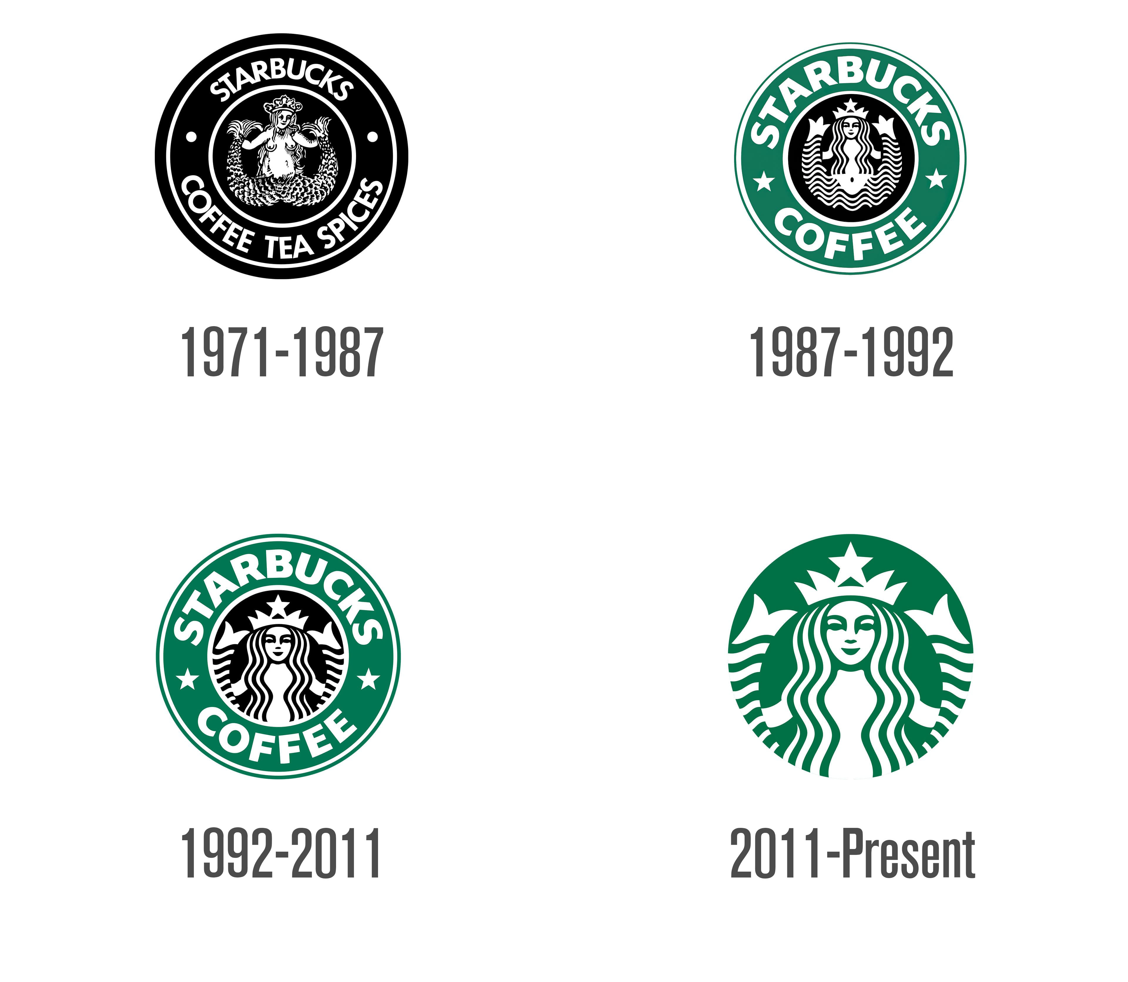 1987年,星巴克完成重要视觉调整。海妖形象被明显简化,胸部被长发遮挡,整体趋于含蓄。王冠更加清晰,并在中心加入五角星元素。