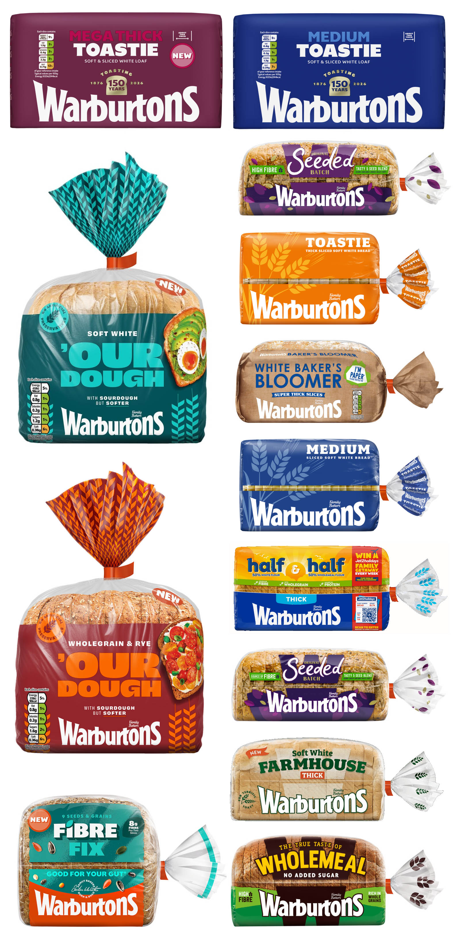 Warburtons携手Taxi Studio完成全品类包装焕新,借品牌150周年契机打造统一视觉体系,让超70款烘焙产品实现货架端的高辨识度呈现,此次烘焙品牌包装升级也成为食品行业视觉系统化设计的典型案例。