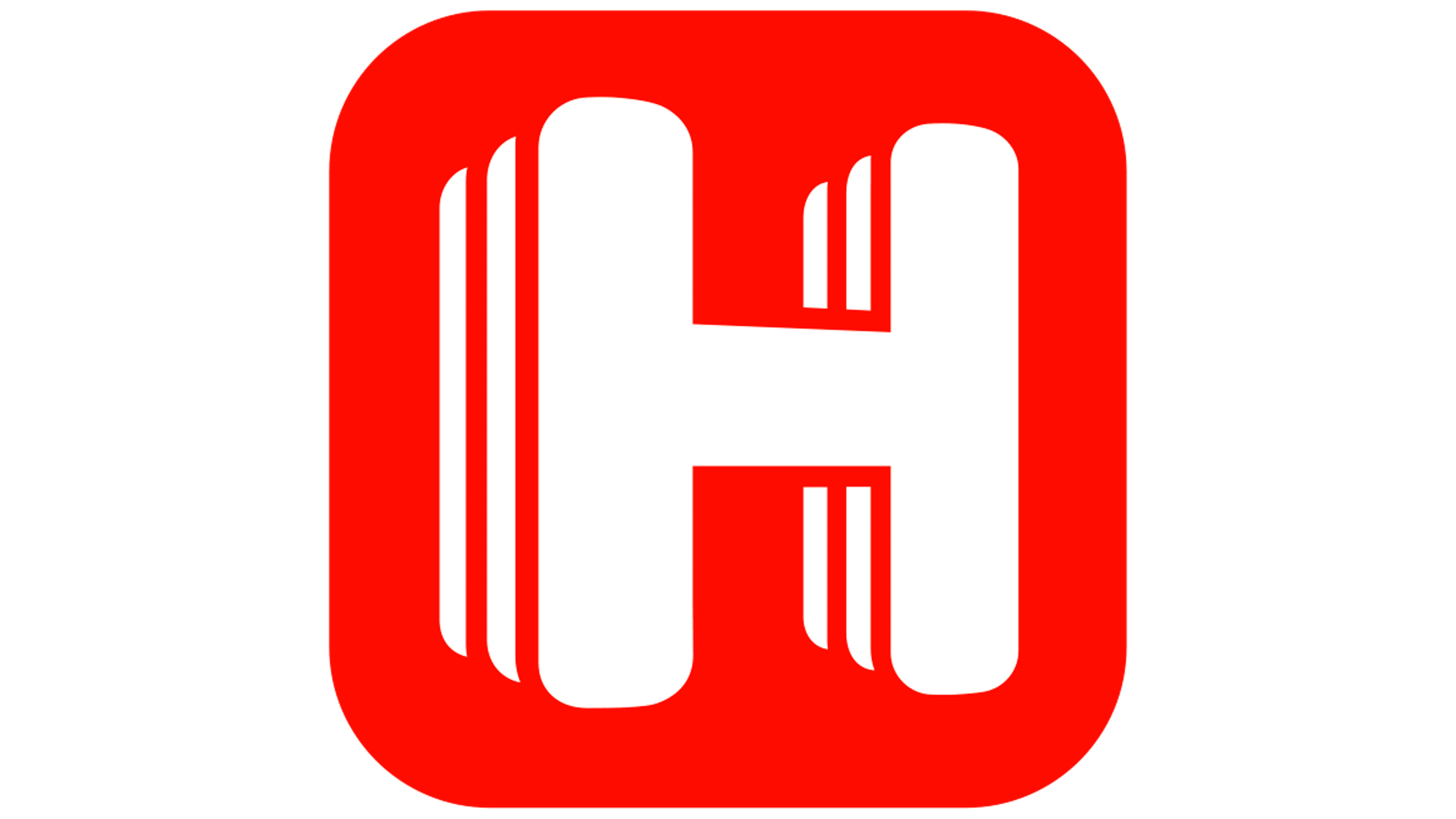 新LOGO延续标志性的红色方形底色,对内部图形进行了重绘。原有符号被替换为一个更具识别力的字母H结构,由两侧圆角竖形与中部横向连接组成。左侧加入细密的纵向条纹,形成轻微的层次与视觉位移,使整体更具数字界面适配性。