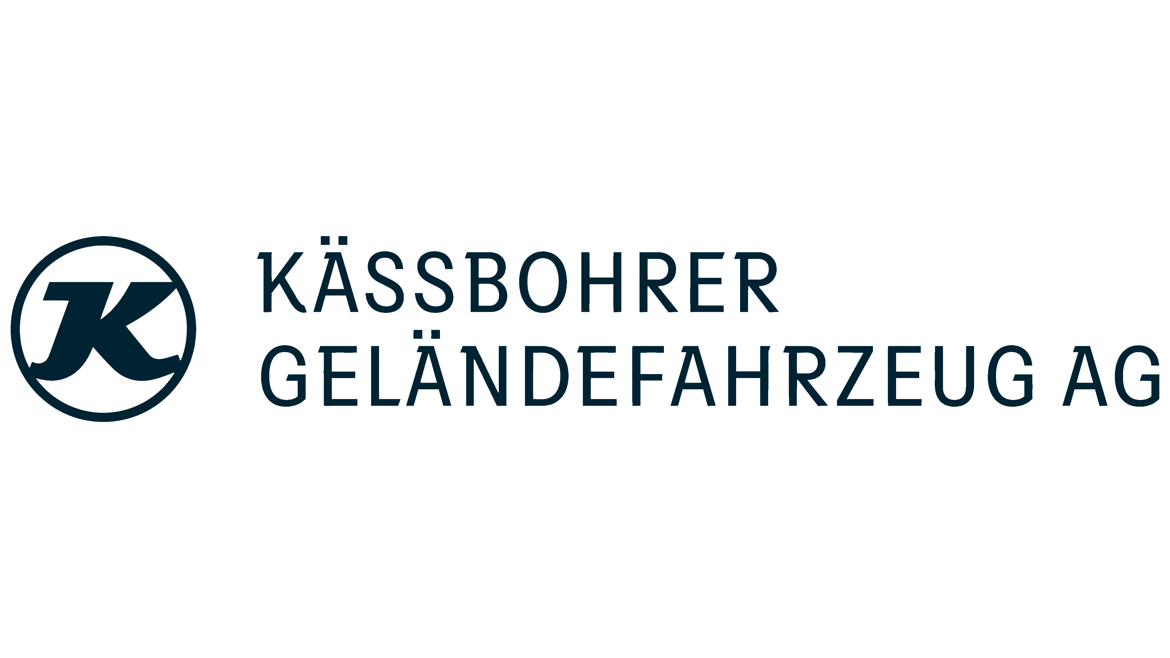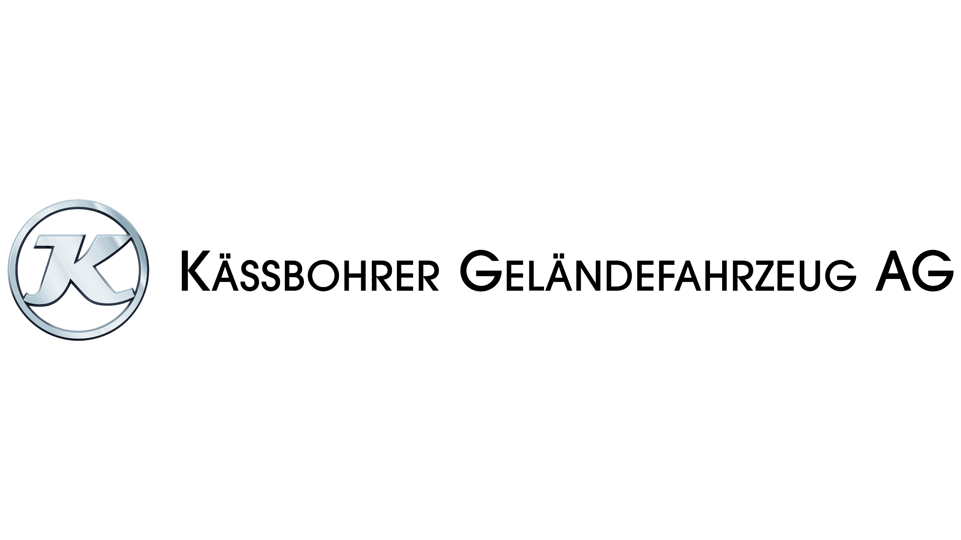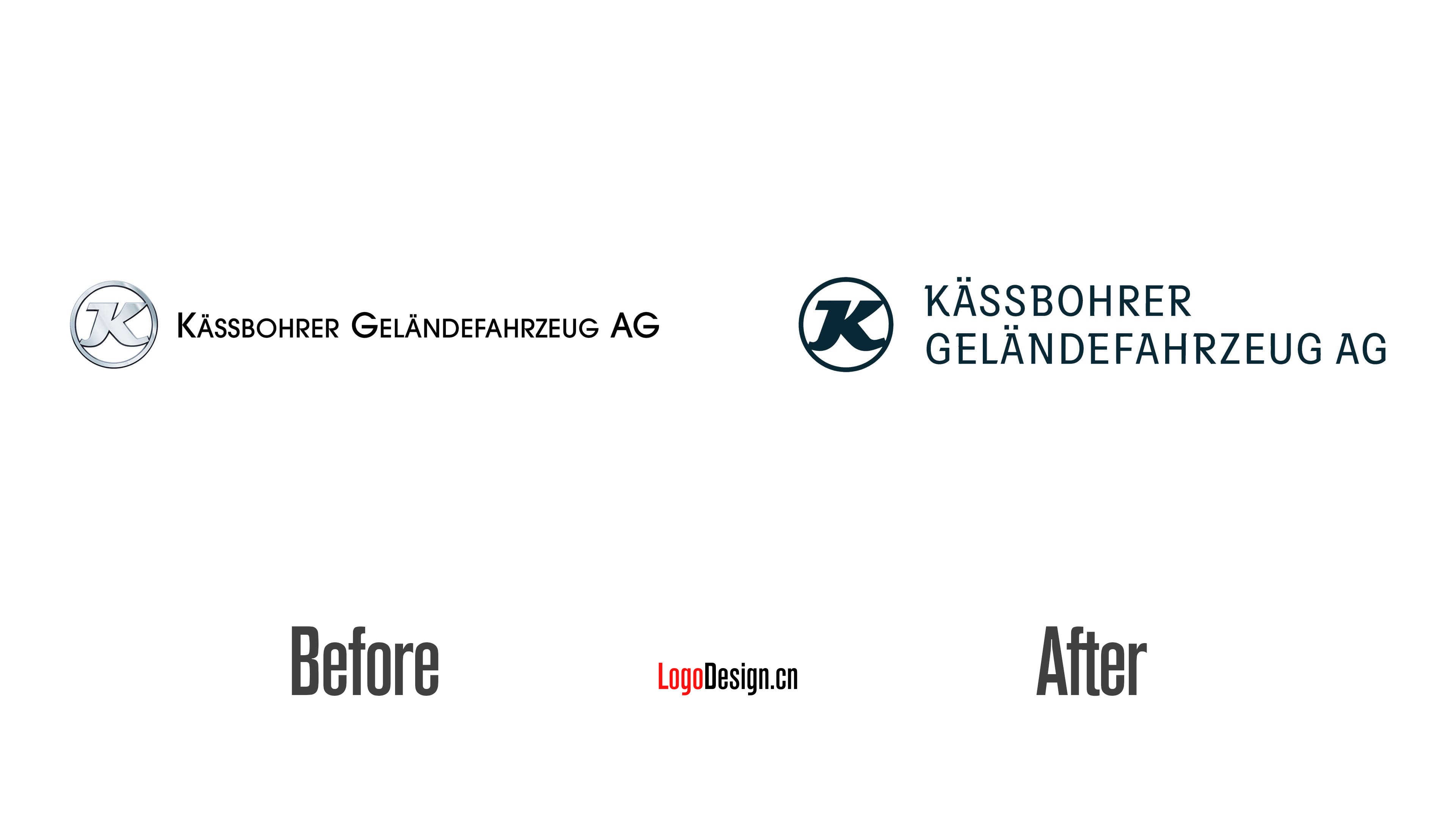 品牌名称的呈现方式发生调整,由单行改为上下两行结构,上方为K?ssbohrer,下方为Gel?ndefahrzeug AG。字体依然采用无衬线风格,但笔画更轻,视觉重量降低,整体显得更克制。