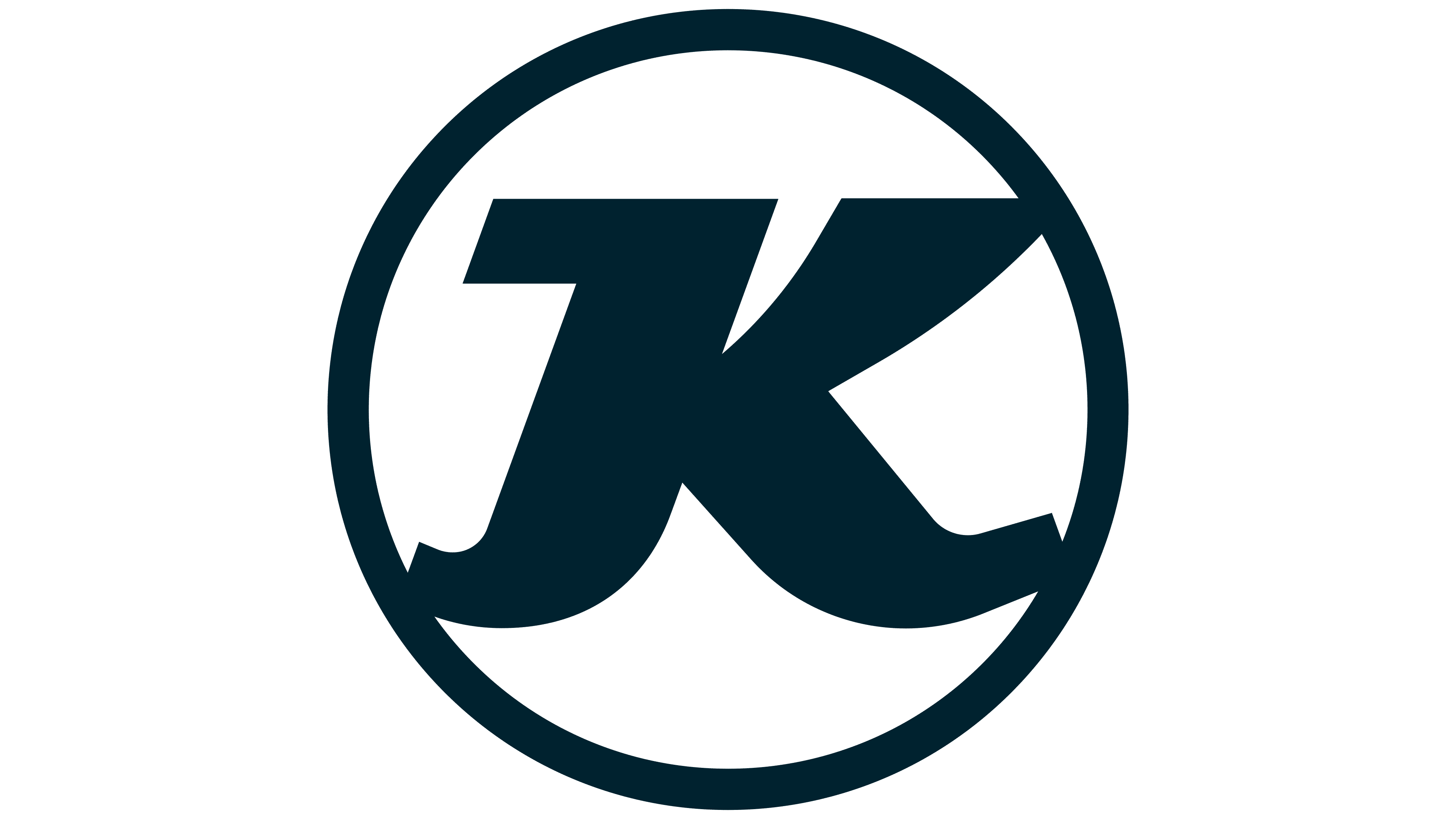 新旧标志在结构上保持延续,但视觉语言发生明显变化。原有LOGO以立体金属质感呈现,圆形徽章中嵌入K字母,整体更接近机械盾牌的表达。新版则去除了三维效果,改为深蓝色扁平图形,呈现更简洁的品牌视觉风格。