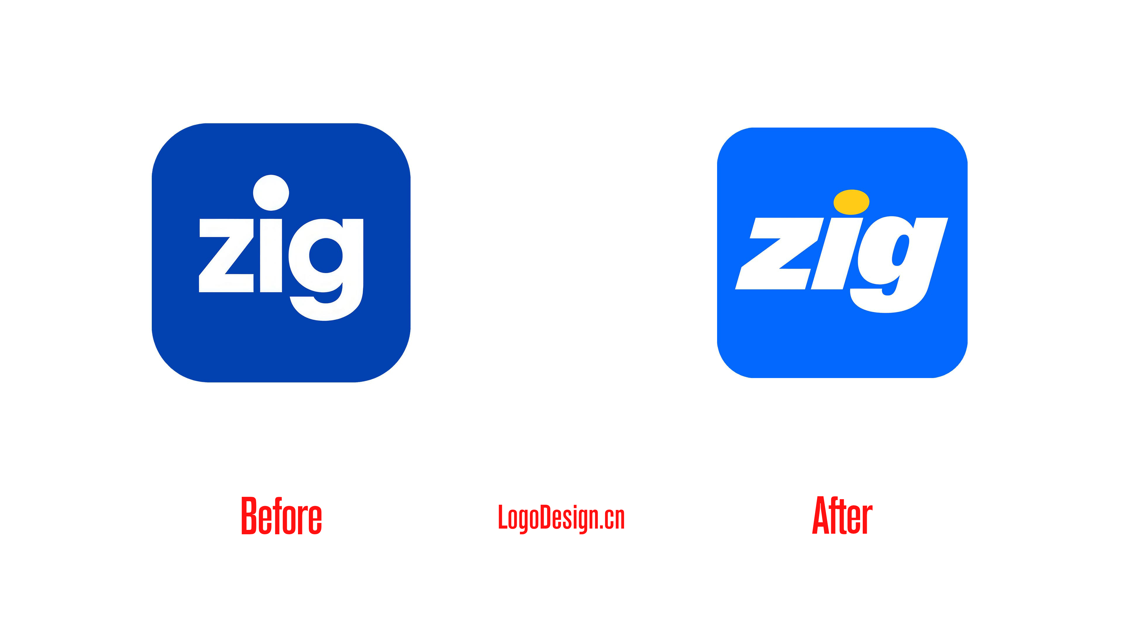 新版Zig LOGO延续了原有的方形结构与圆角轮廓,整体识别并未被推翻,而是进行了更聚焦的视觉优化。蓝色底色有所提亮,使品牌在移动端界面中更具识别度。字体部分进行了调整,字母略微倾斜,边角更加利落,整体呈现出更轻快的节奏感。