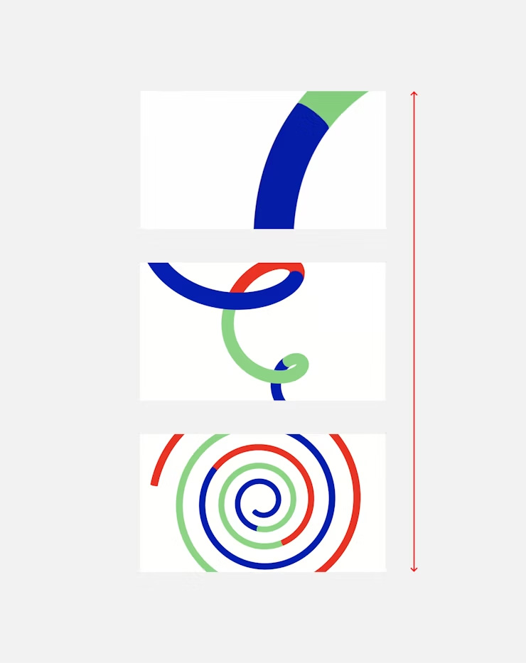 整个品牌视觉系统并不依赖单一符号,而是由两种结构共同构成:螺旋与线性条形。