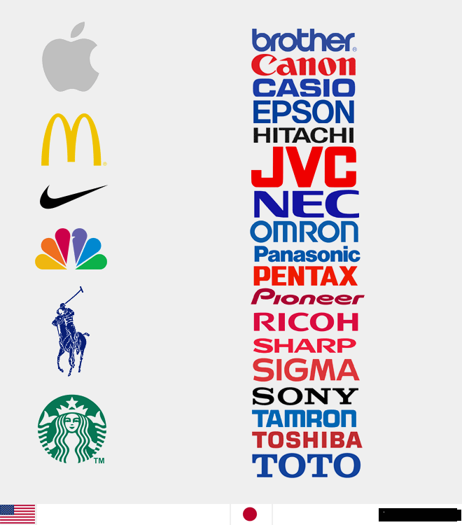 不能说这是两个国家的品牌标识常态,诸如IBM/Philips/Fedex/Google等许多跨国品牌也将纯字体标识运用到极致,而日本包括 Yonex/Ito Yokado/Hello Kitty/Mitsubishi等品牌也能纯图示人,甚至有时候我们很难准备地分辨出什么是字体什么是图形,如Coca-Cola。今天的logo对照 仅是一时兴起,但不可否认美国品牌在全世界的影响力仍独具优势,以Apple与nike为代表的品牌深深地渗透到世界性的流行中,标识本身的不朽功不可 没。而日本语境中有大量的多音节或多字母品牌名,纯字体也是明智选择。